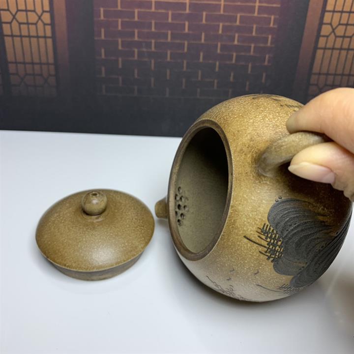 手工紫砂壺家用茶壺原礦青灰段泥全手工刻繪寬口文旦pot3684