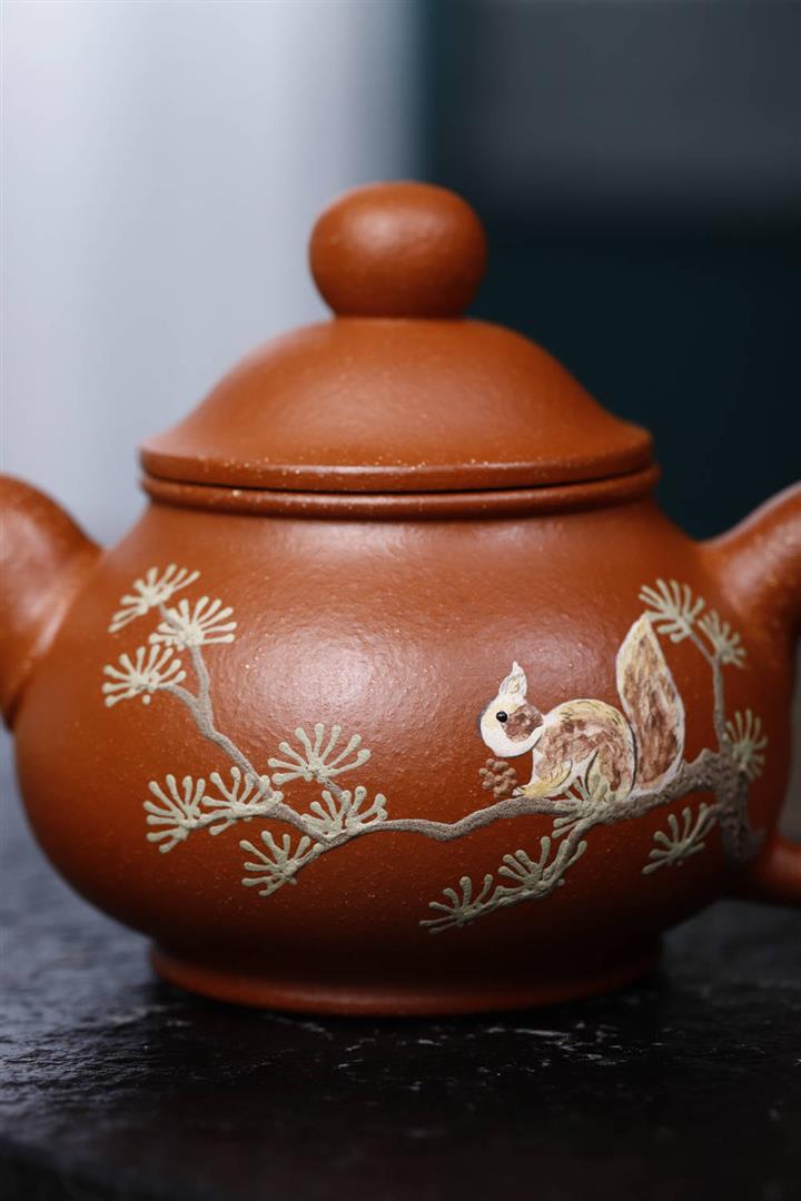 紫砂杯全手工帶蓋手繪茶杯子金玉滿堂朱泥518ml盒裝pot3878