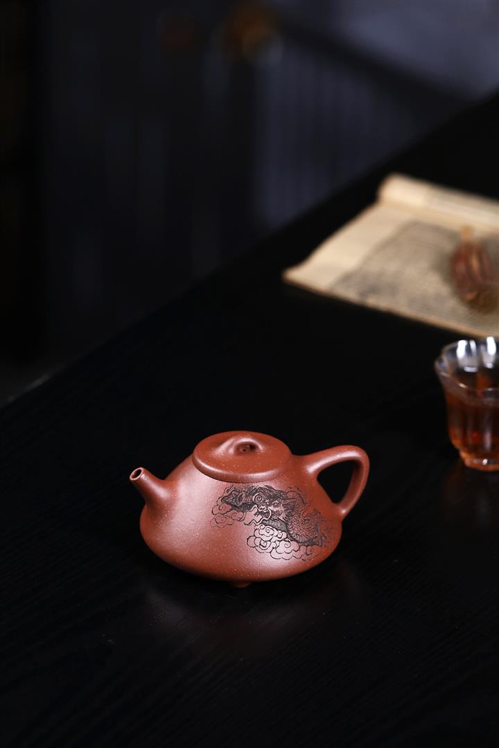 龍騰四海紫砂壺原礦降坡泥浮雕石瓢 POT4024