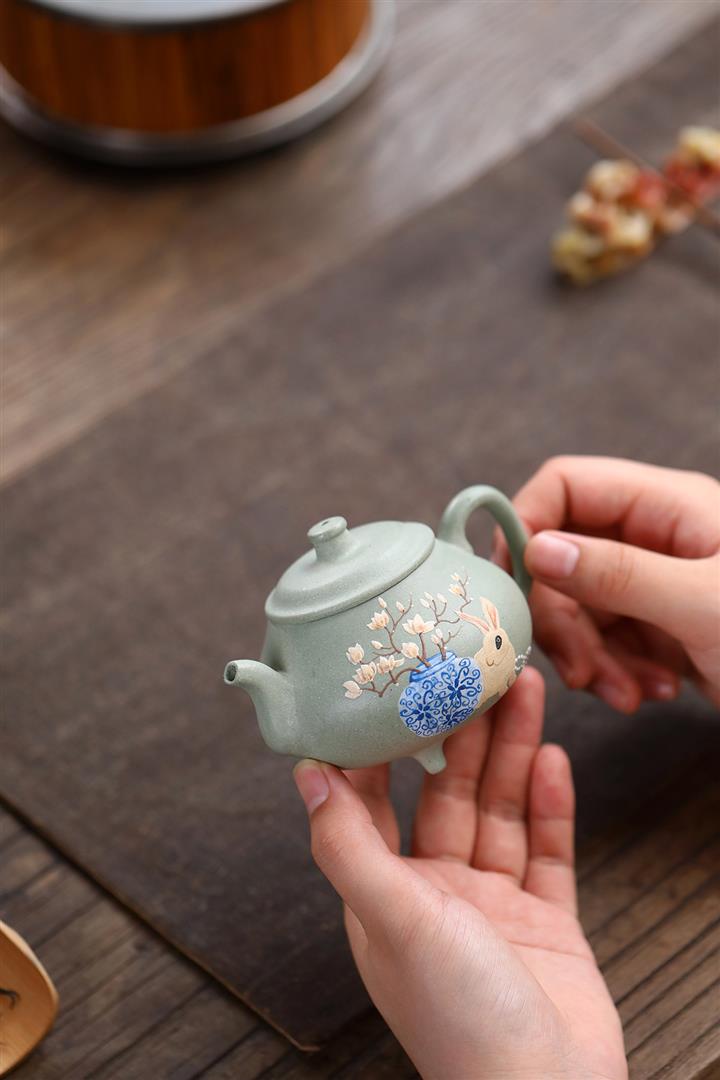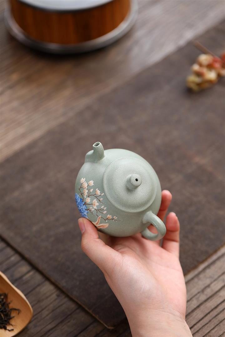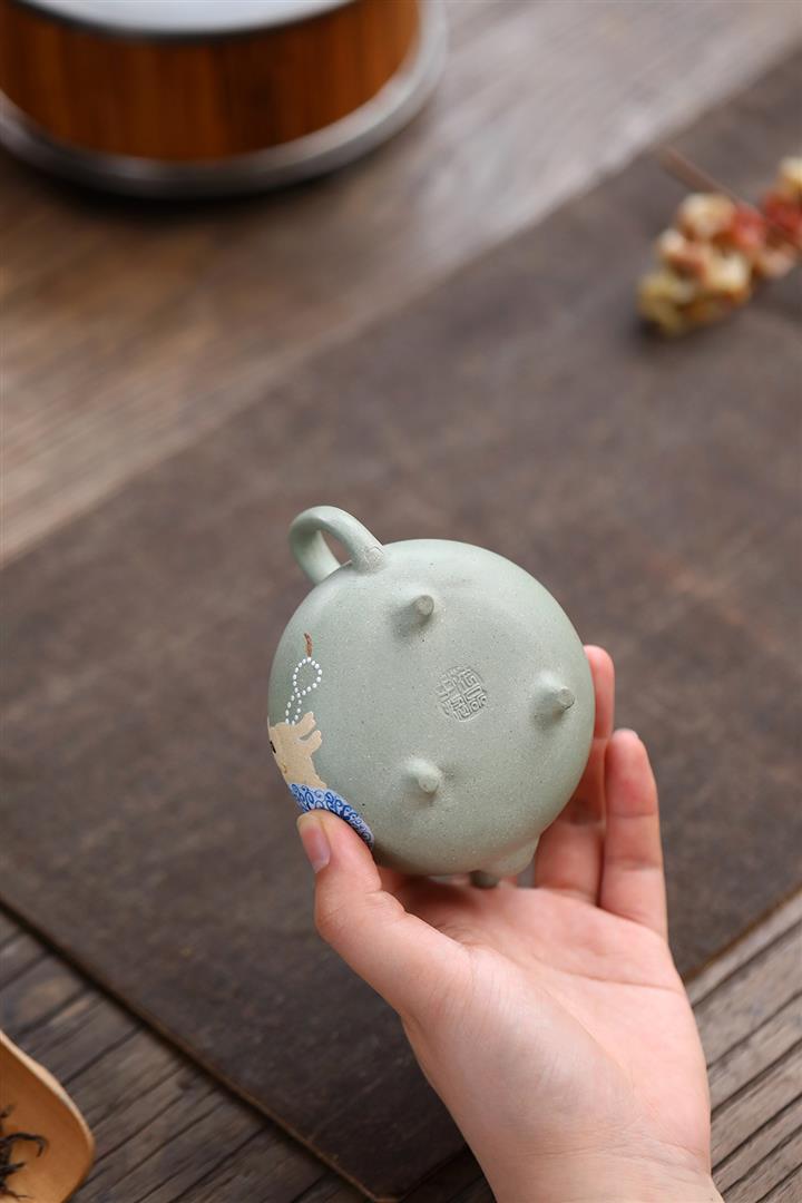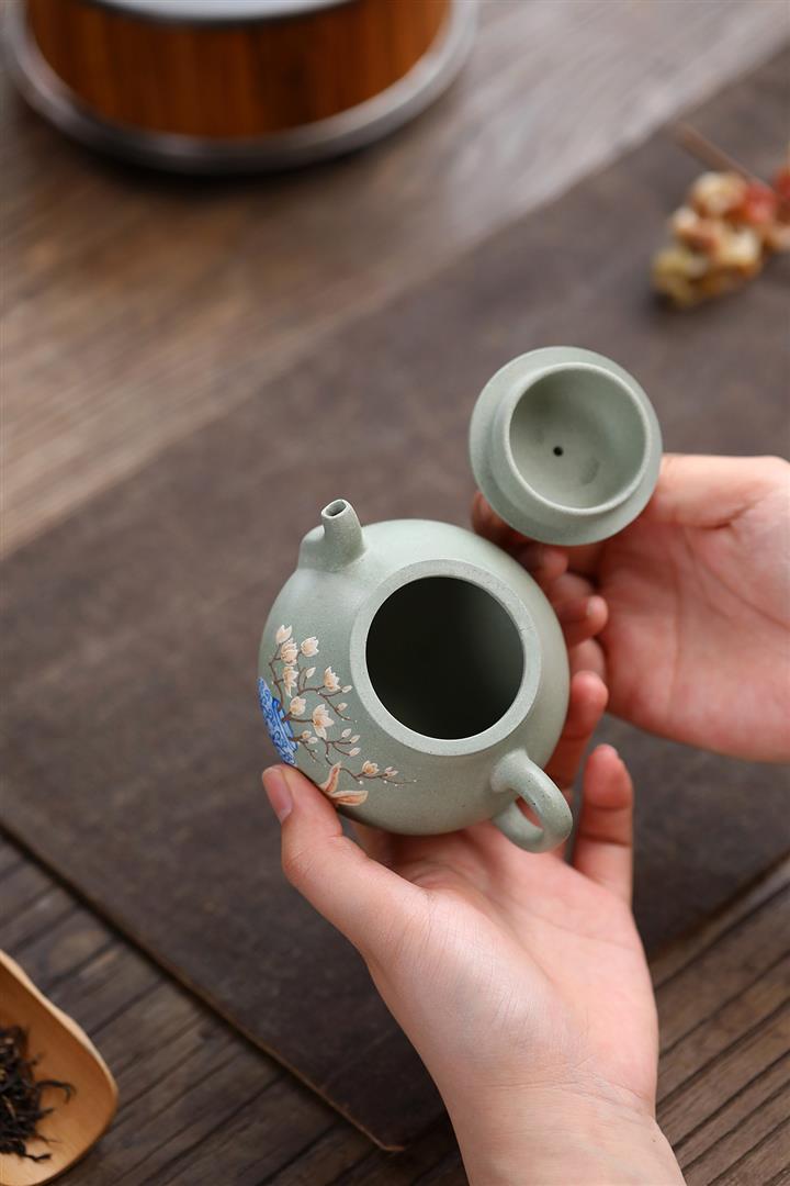 原礦紫泥刻繪石瓢紫砂壺POT4752