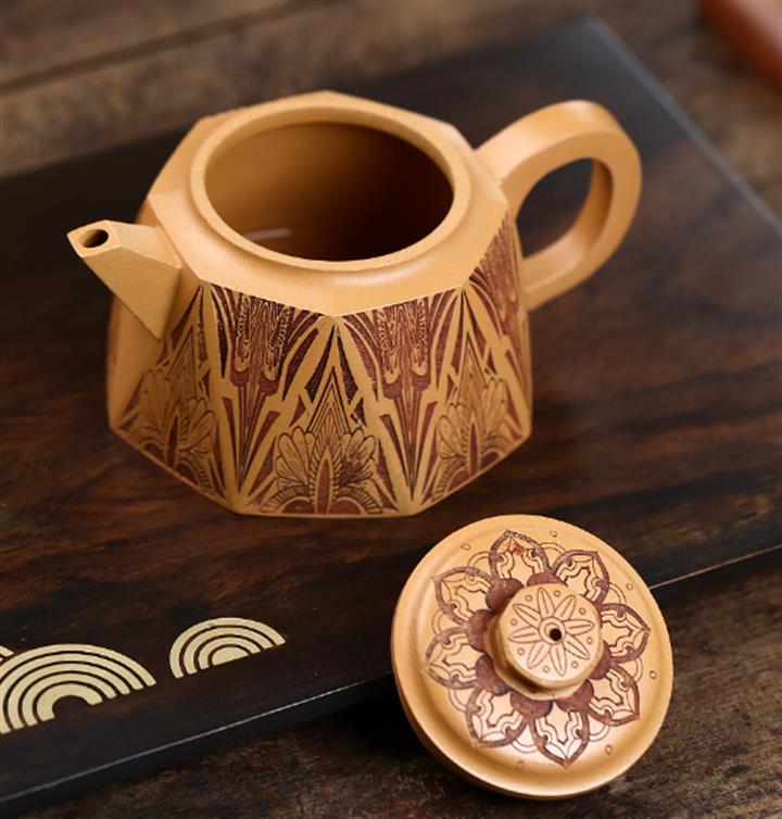 原礦陳腐葵黃段泥錦紋仿古紫砂壺POT4871