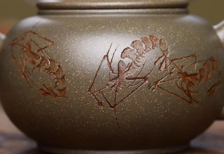 原礦青段泥蝦趣水平紫砂壺POT4877