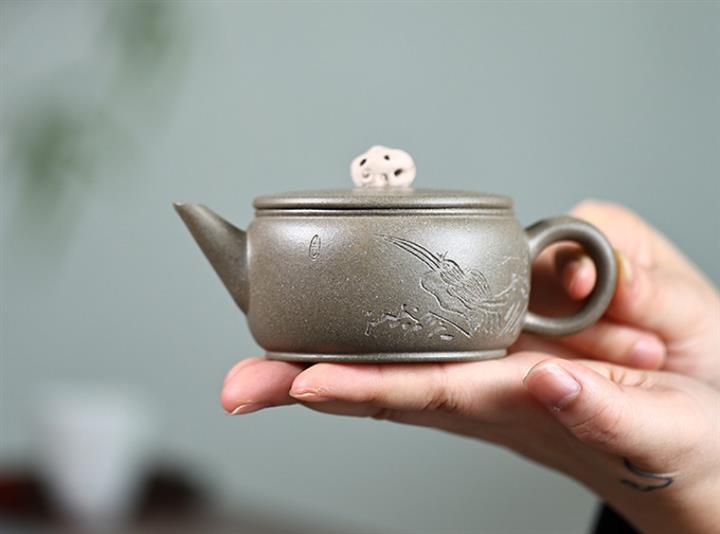 稀有豆青砂飛瀑巨輪紫砂壺POT4918