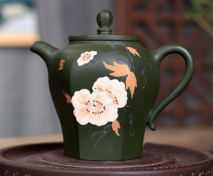 原礦翡翠綠泥寒梅傲骨矮秦權紫砂壺POT4917