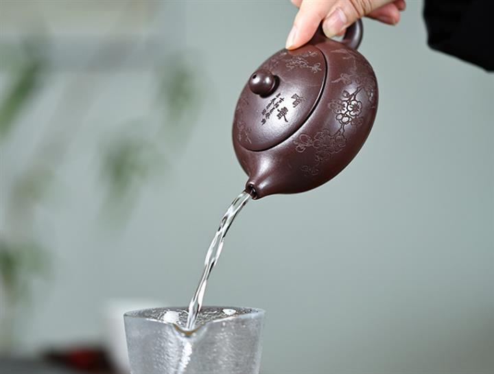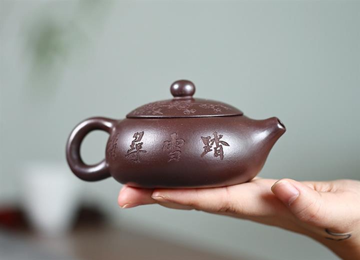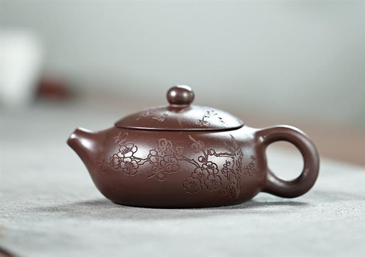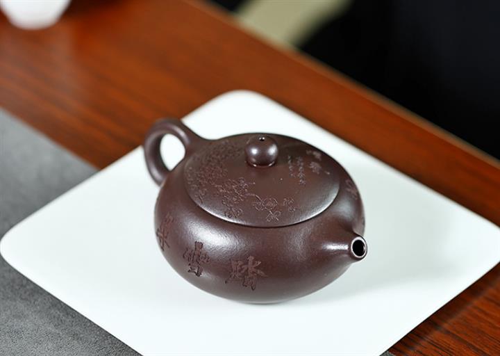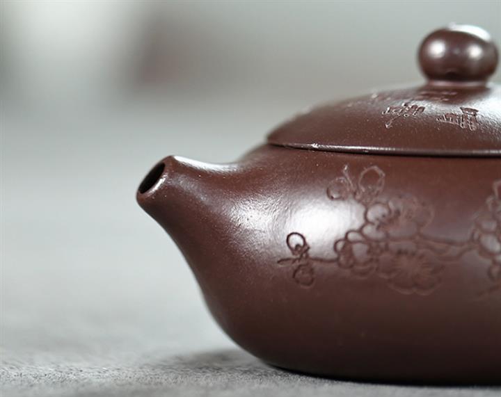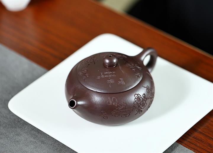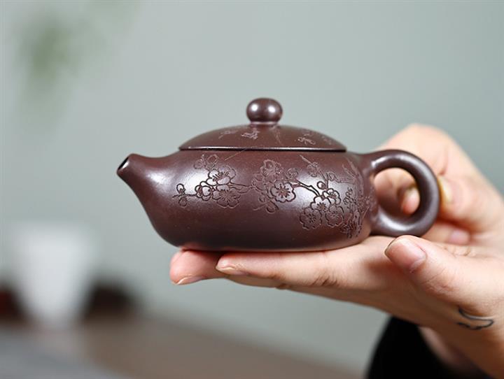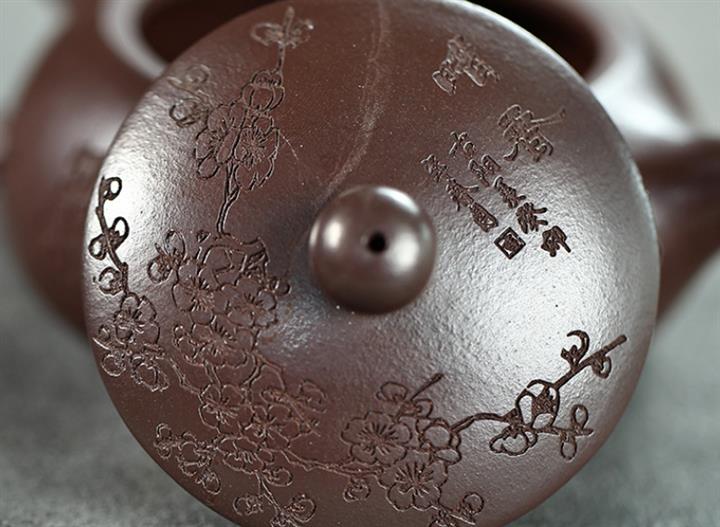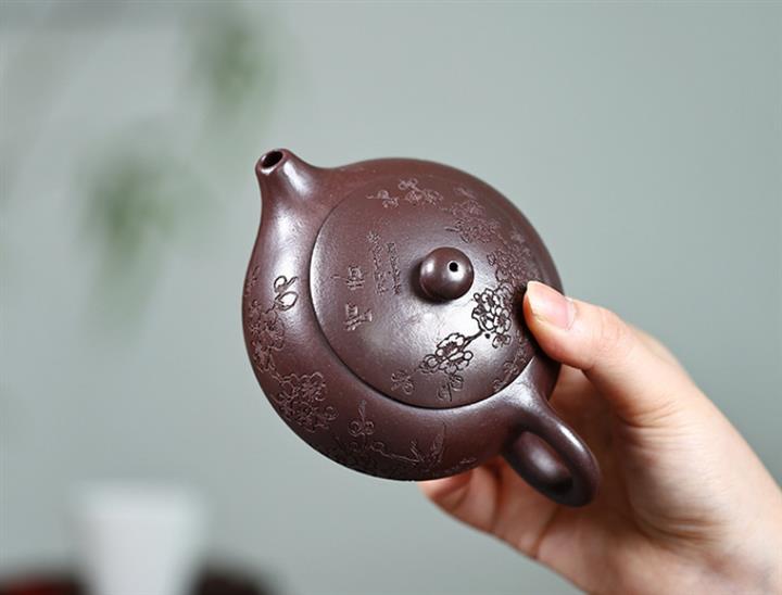 巧,球孔出水流暢,泥料透氣性好,容易泡養,壺身刻梅花圖,配證書,送壺繩,