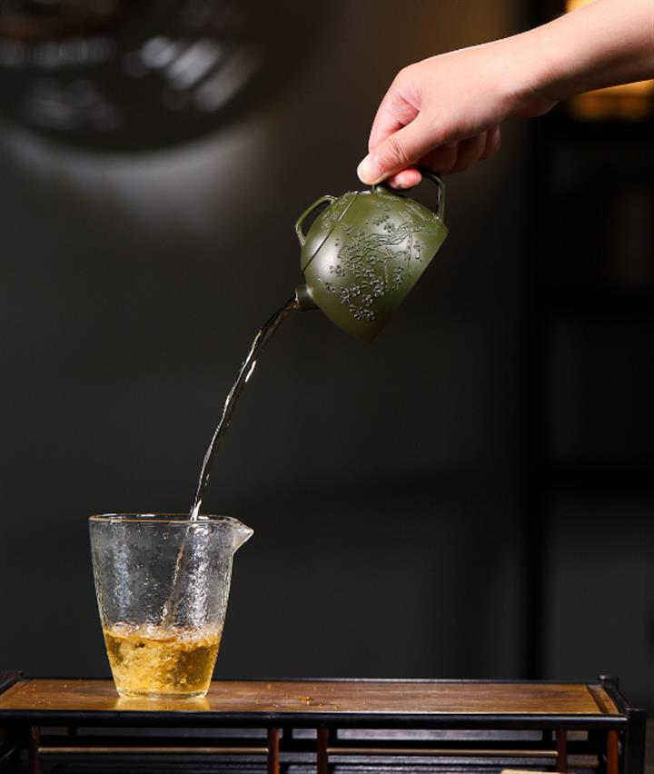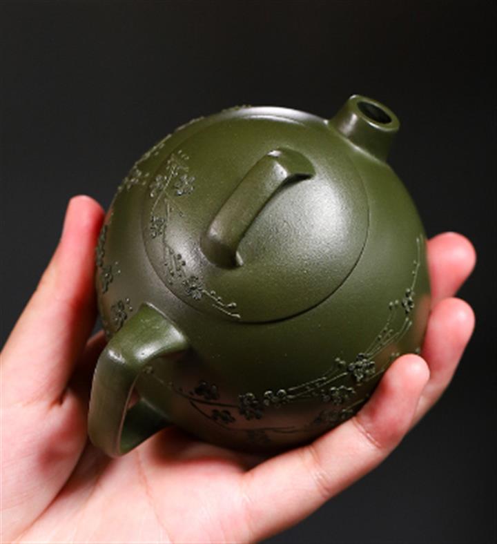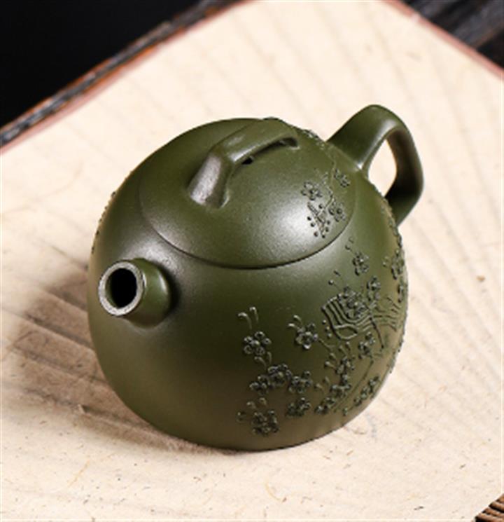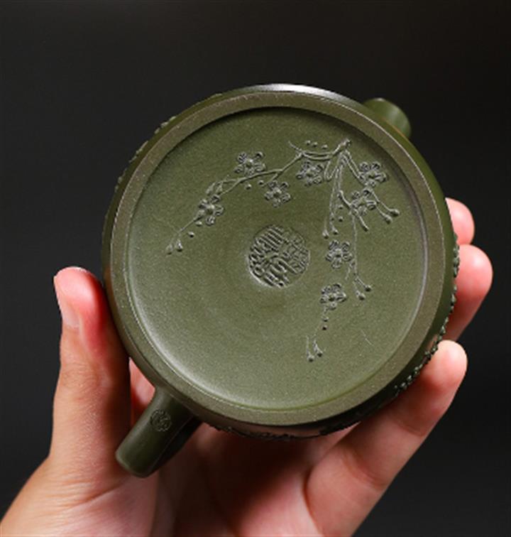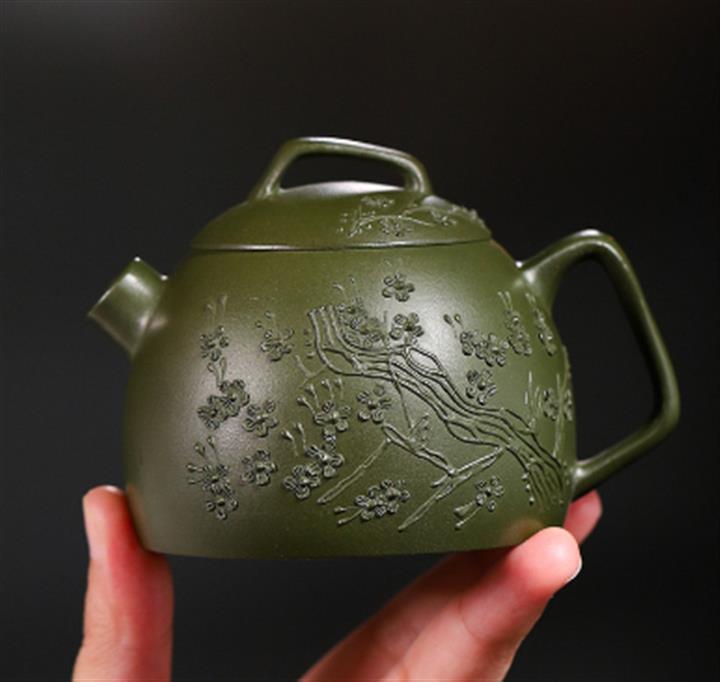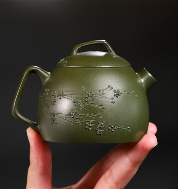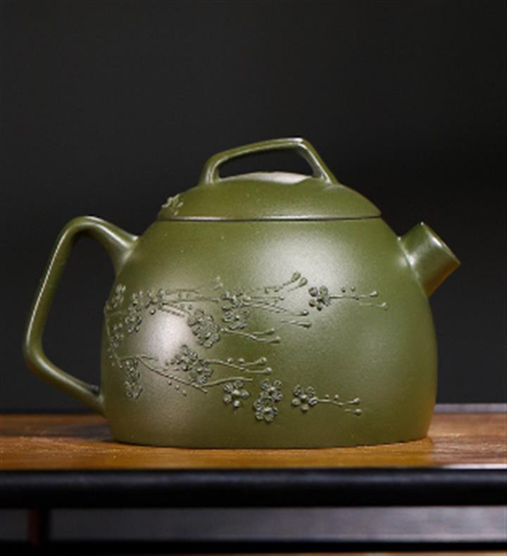 原礦翡翠綠泥寒梅傲骨矮秦權紫砂壺POT4917