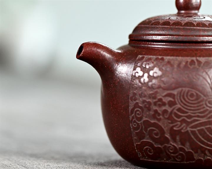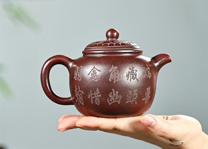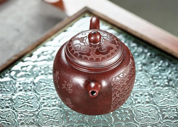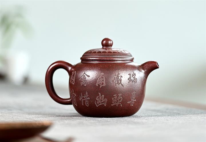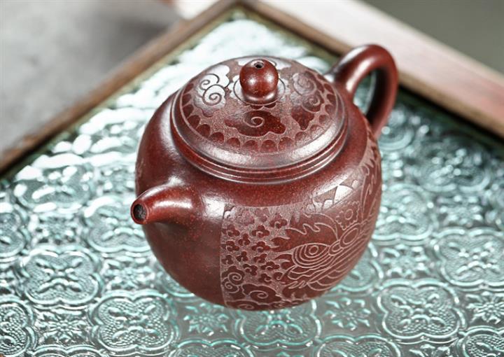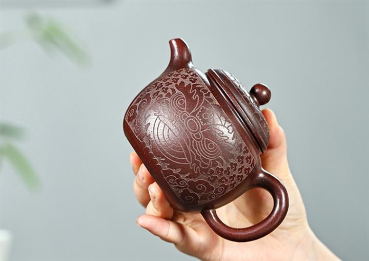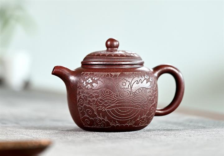 介紹該壺比例協調,器型圓潤大氣,出水流暢,壺身刻字畫,配證書,送壺繩,禮品盒包裝。