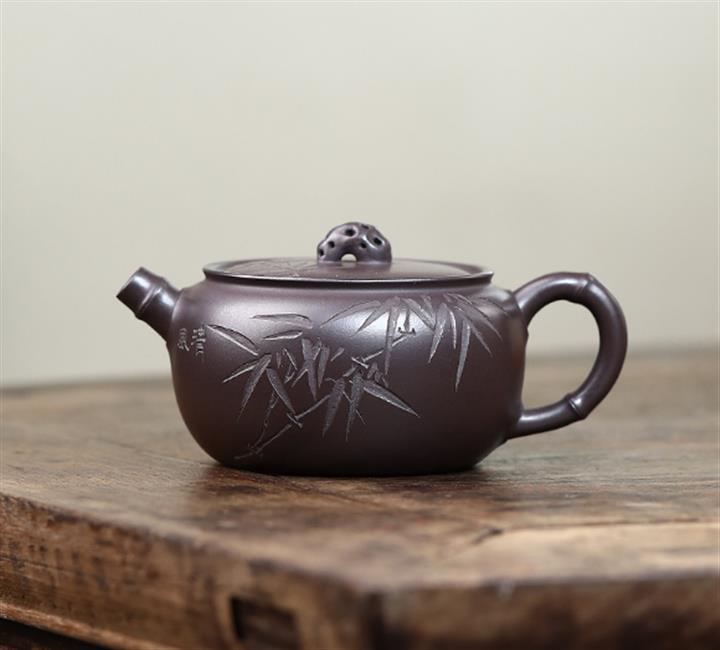 原礦百目紫泥太湖石竹段紫砂壺POT4979