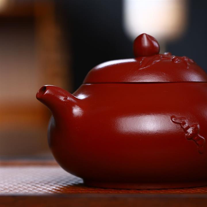 【泥料特點】紫紅泥,主要成分是氧化鐵,呈紫紅色,質地細膩,有光澤,不黏手,燒成後錶麵光亮,顆粒比較細膩,壺錶麵觸感極為平滑,紫紅泥成型工藝難度比較高,成品率僅為七成左右,所以極為珍貴,收藏價值極高。