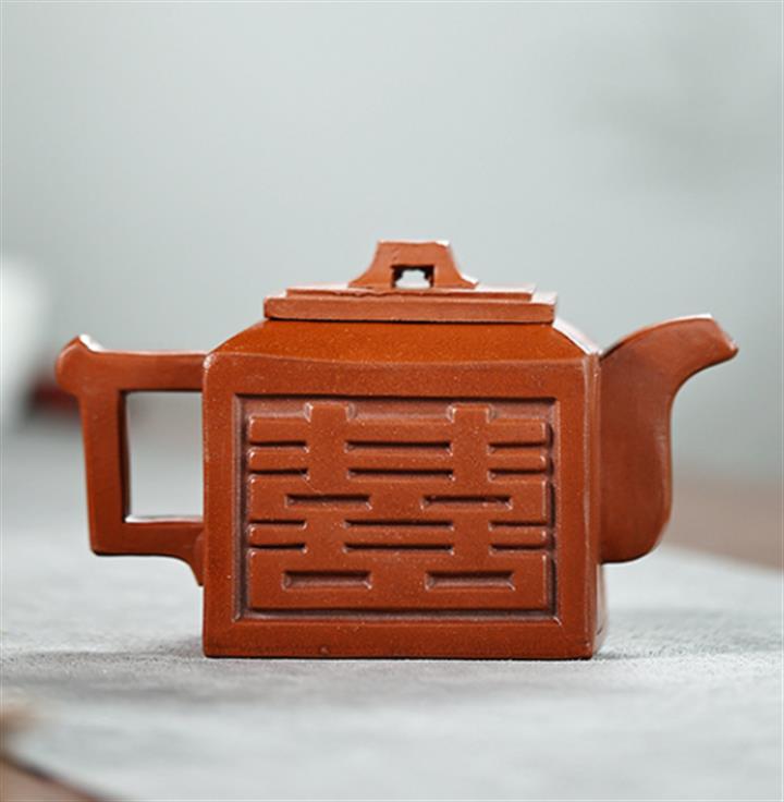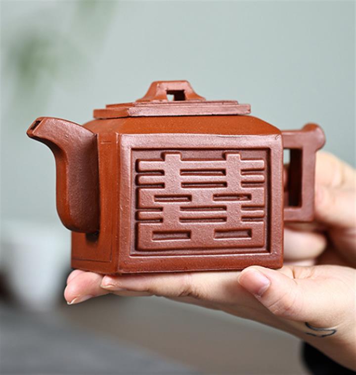 【簡介】該壺比例協調,器型別致,壺身雙喜造型,15孔出水流暢,泥料透氣性好,容易泡養,送壺繩。