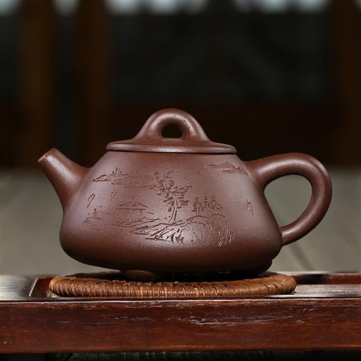 原礦紫泥刻繪石瓢紫砂壺POT4956