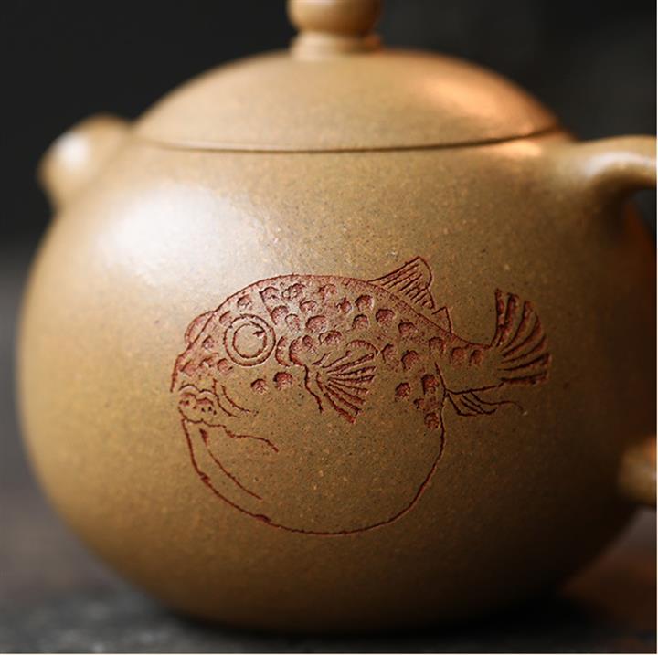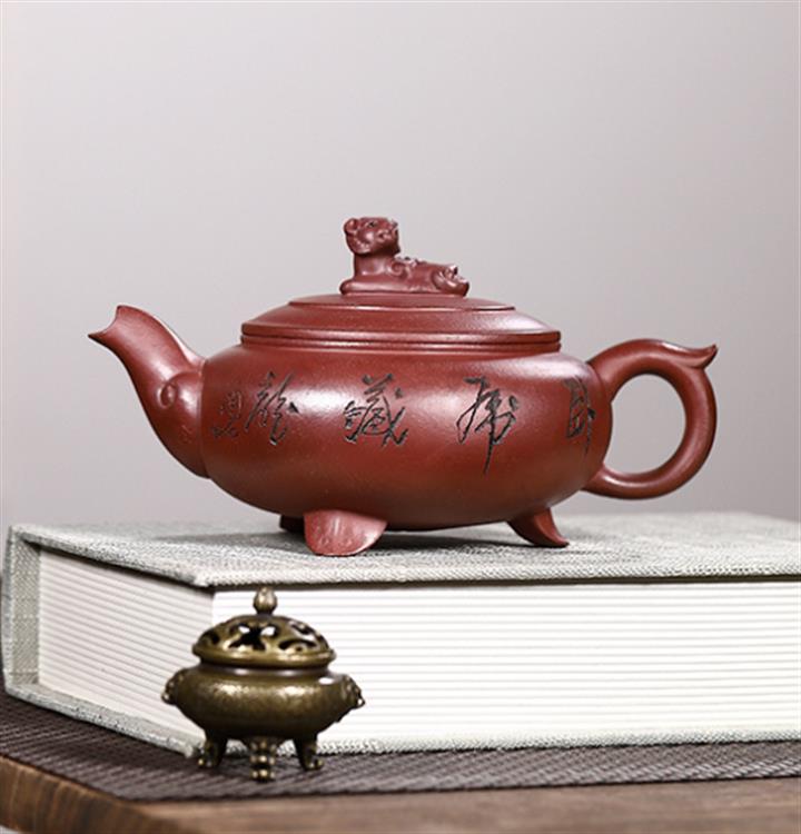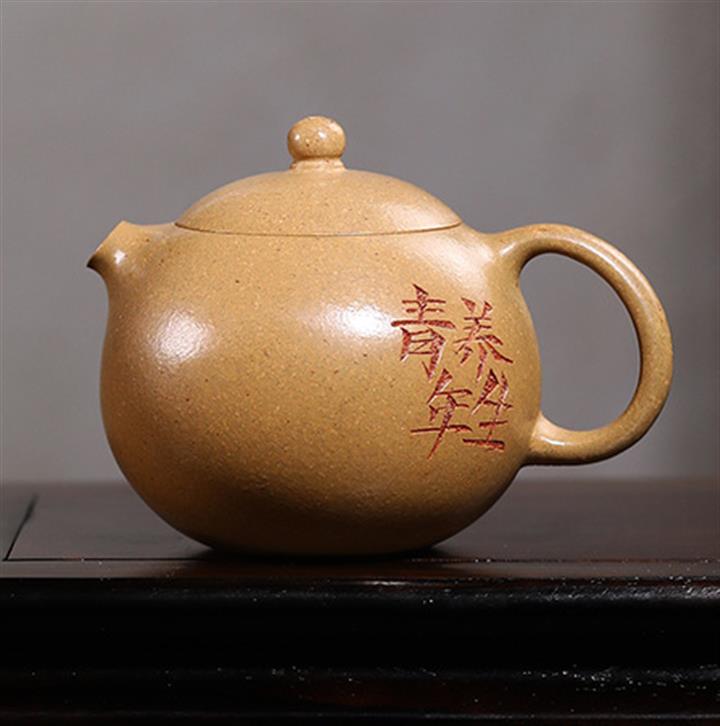 原礦紫泥刻繪石瓢紫砂壺POT4956