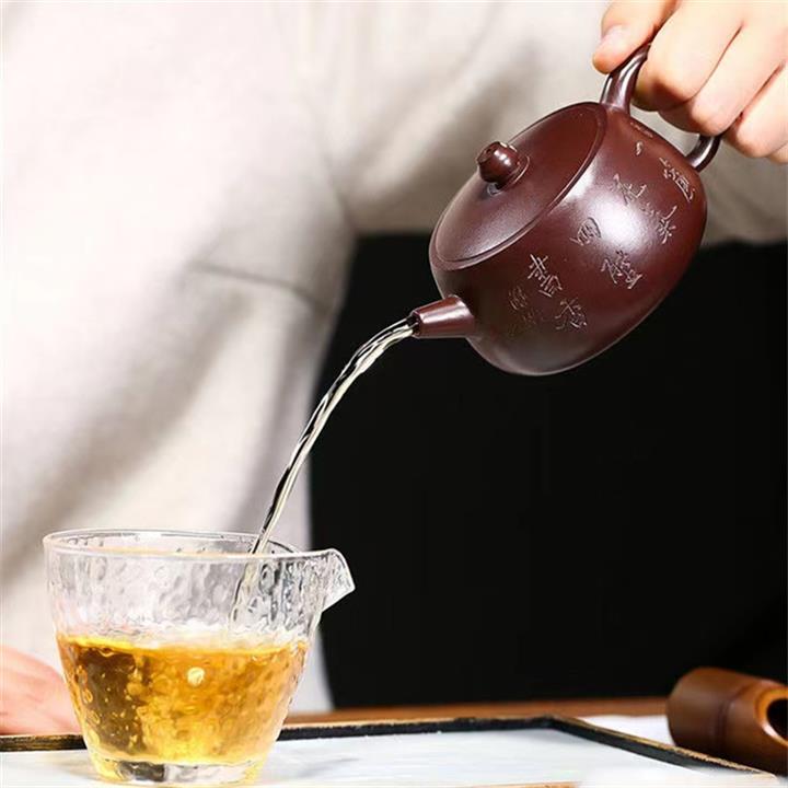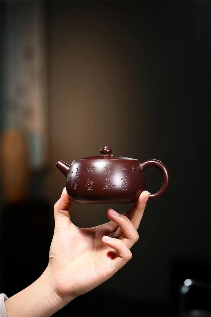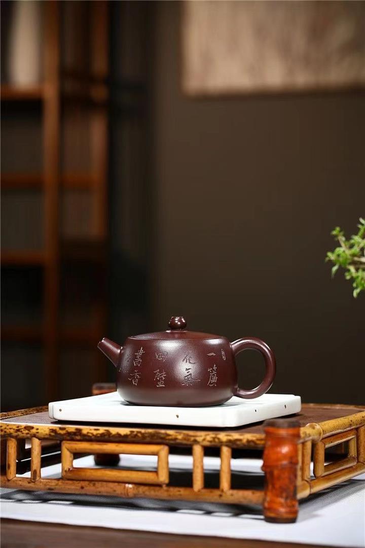 紫砂使用越久,壺身色澤越發光亮照人,氣韻溫雅。紫砂壺長久使用器身會因撫摸擦拭,變得越發溫潤光澤