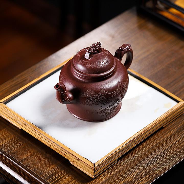 原礦紫泥雙龍如意紫砂壺POT5007