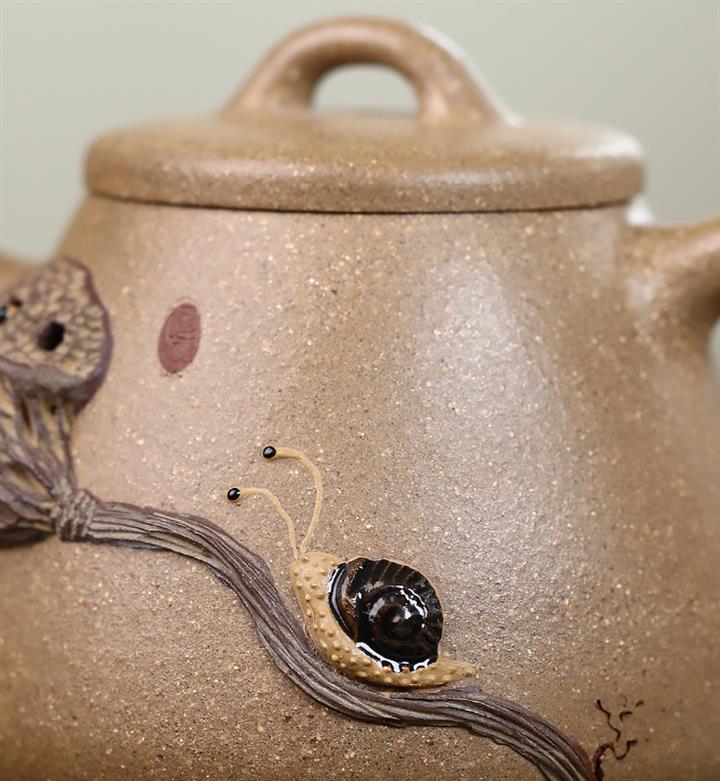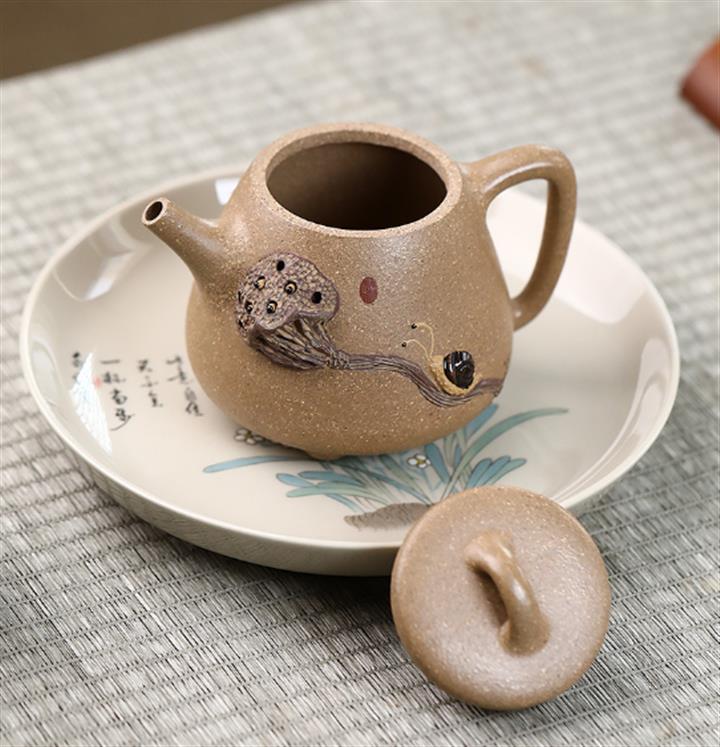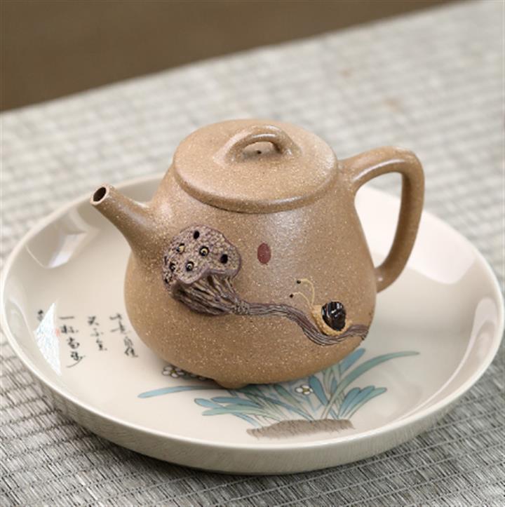 豆青砂漁翁荷趣紫砂壺POT5028