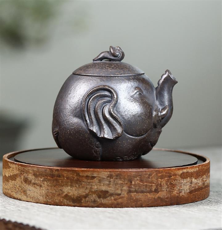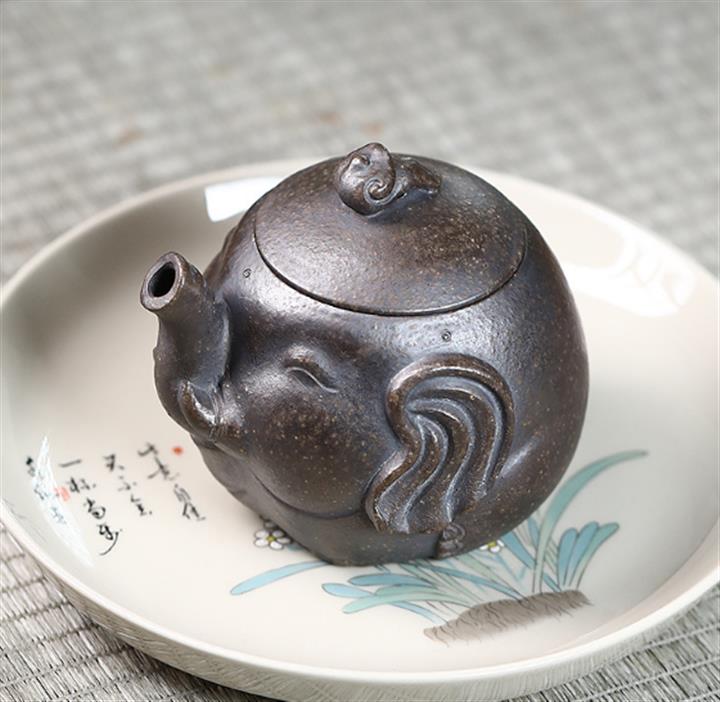 原礦古銅泥吉象如意紫砂壺POT5025
