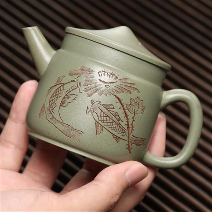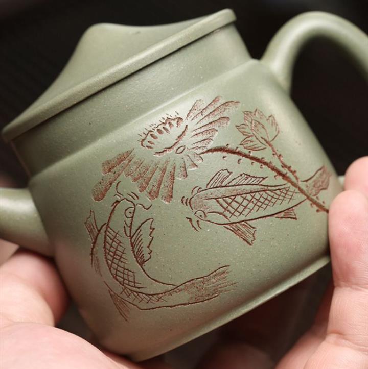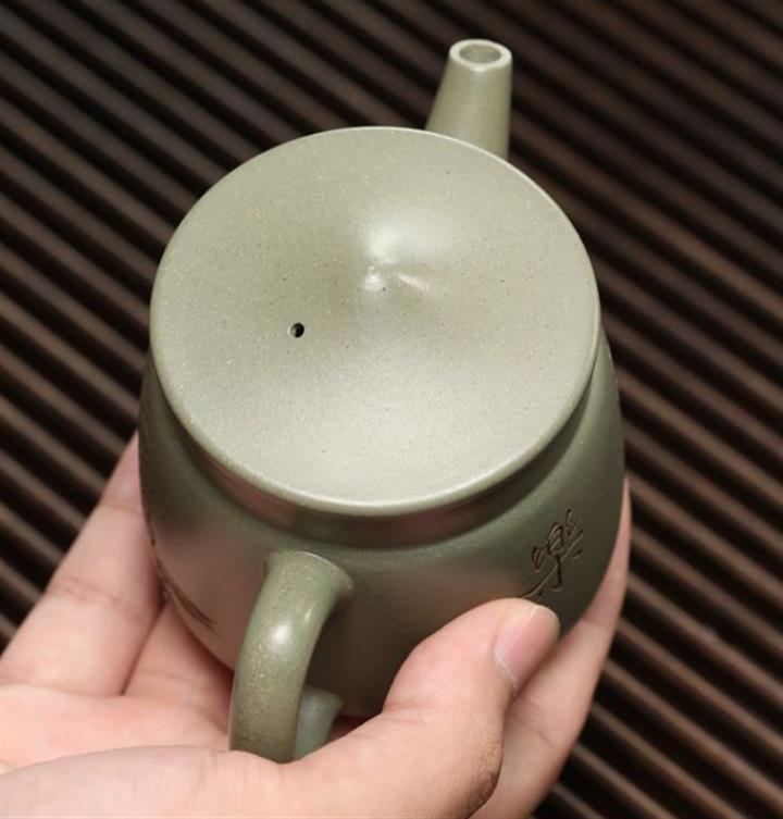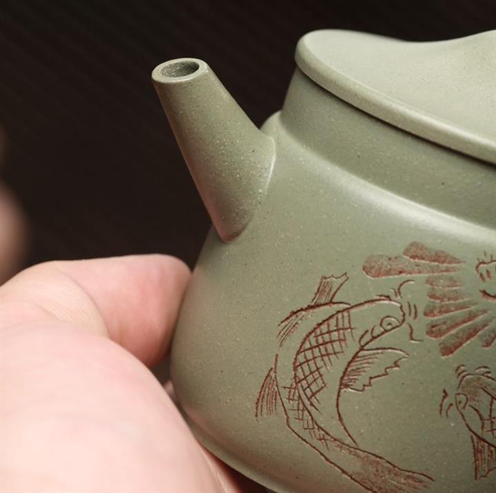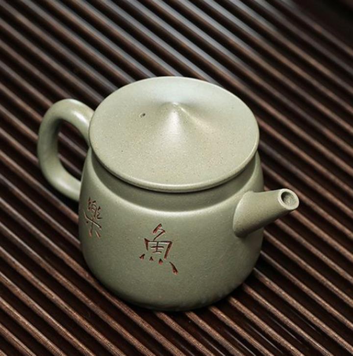 【簡介】此壺造型奇特,整體如同一老翁頭帶帽子垂釣於江邊,那種融於自然的意韻油然而生,而且又有大度豁達與陽剛之氣的存在。壺身飽滿大氣,線條圓潤有利,沈穩而不凝滯,可看作是老翁的手處於垂釣狀態,壺把與整體相對應,而壺蓋便如同老翁的帽子,此情此景不禁讓人心平氣和起來。