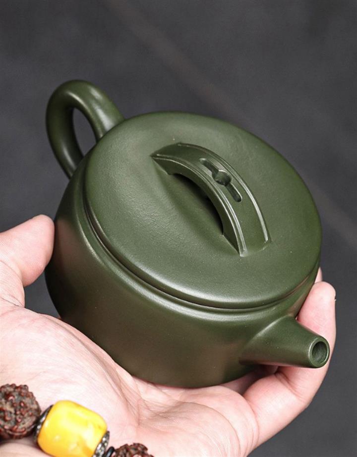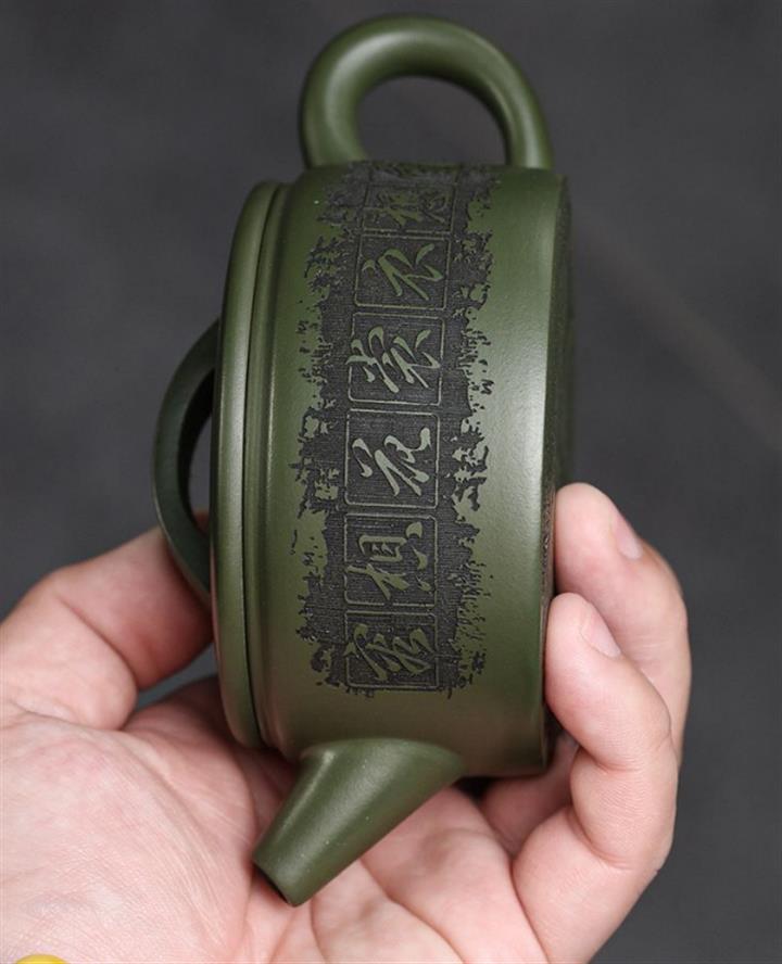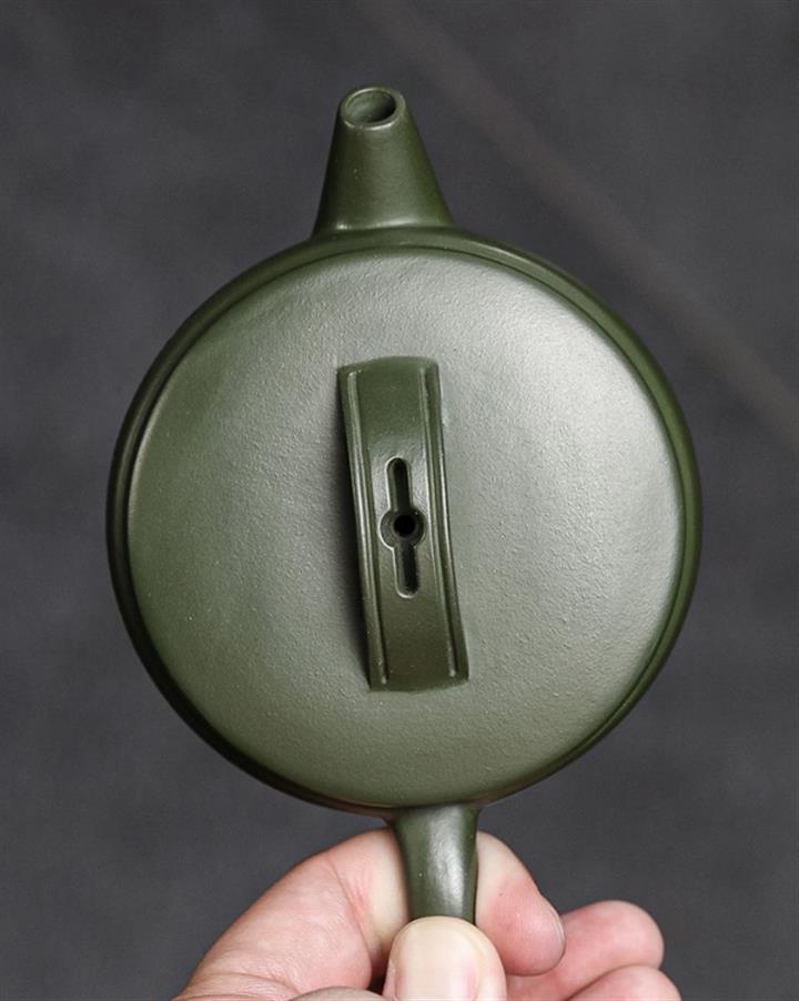 【簡介】漢瓦壺,圓器當中的一種,李盧春老師手工製漢瓦壺,精選紫泥製作而成,古樸端莊,溫和典雅。身直而口大,平蓋板子母線吻合,很是闊朗大氣。橋鈕上鏤雕裝飾,更添古韻。直嘴圓口,出水流暢,耳型端把,彎曲有度。漢瓦壺蘊含大氣素樸與大巧若拙的傳神壺韻,是眾多愛壺茶友幾案桌臺上必不可少的品茗兼屬把玩、觀賞、收藏之壺形
