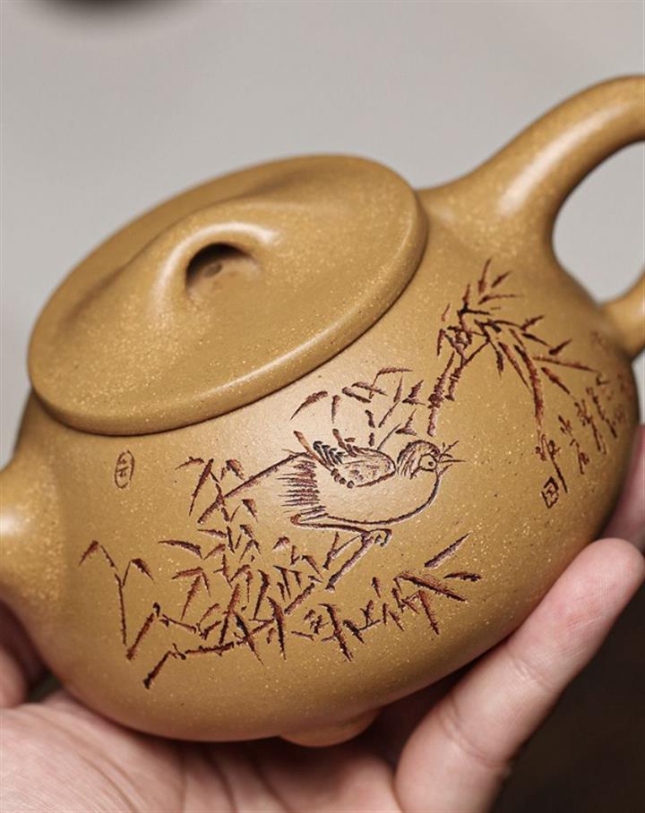 段泥鳥趣石瓢紫砂壺POT5032