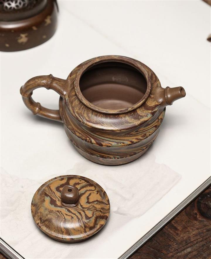 絞泥圓竹紫砂壺POT5034