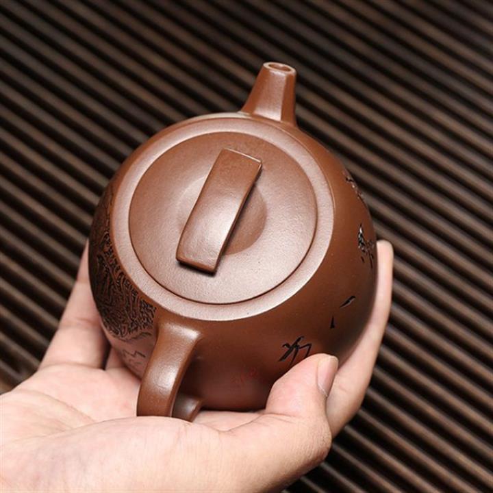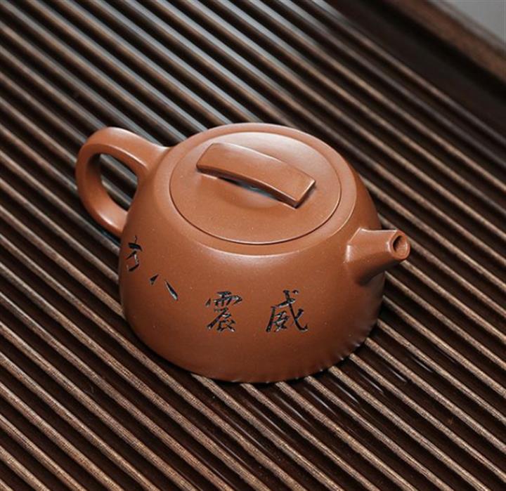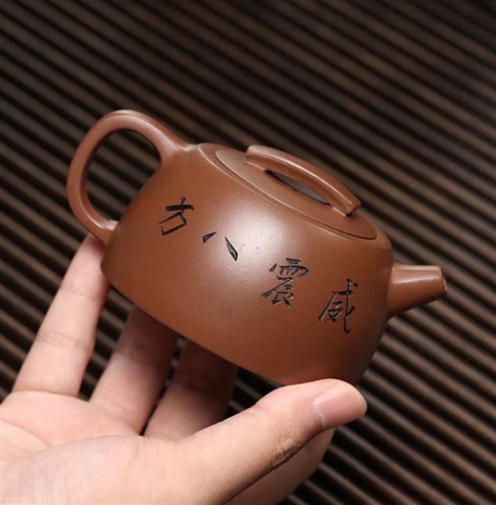 原礦黑泥刻字漢瓦紫砂壺POT5019