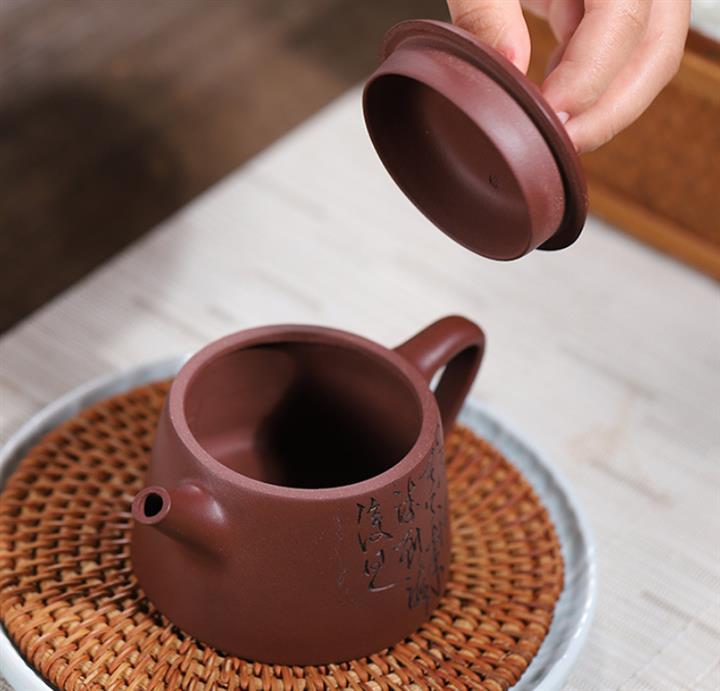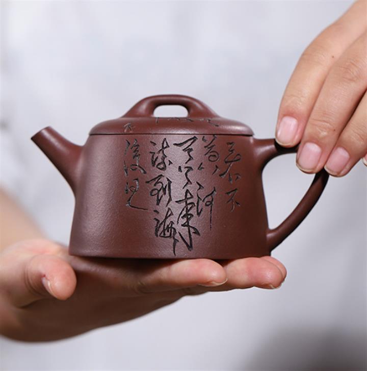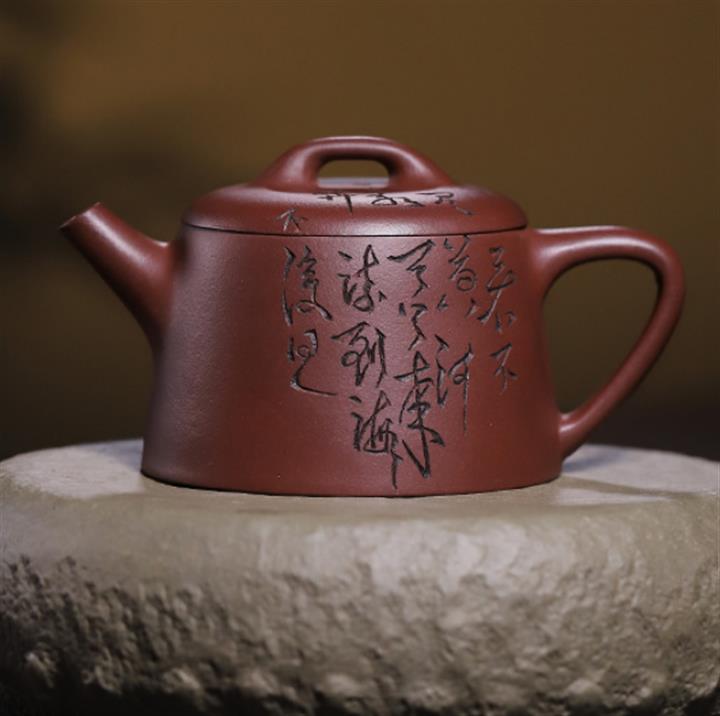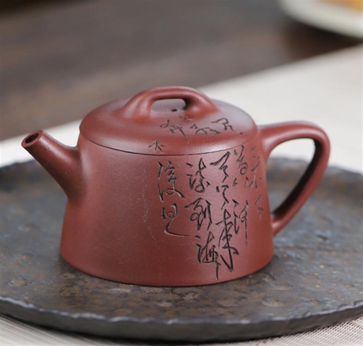 原礦黑泥刻字漢瓦紫砂壺POT5019