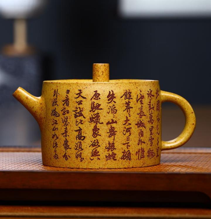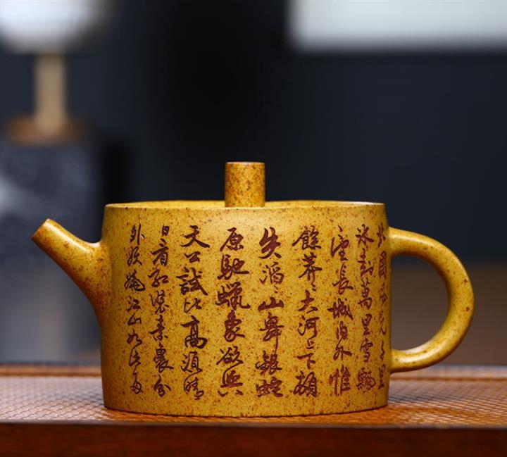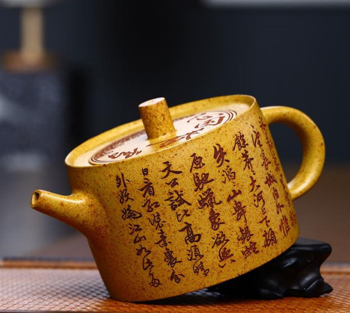 原礦黑泥刻字漢瓦紫砂壺POT5019