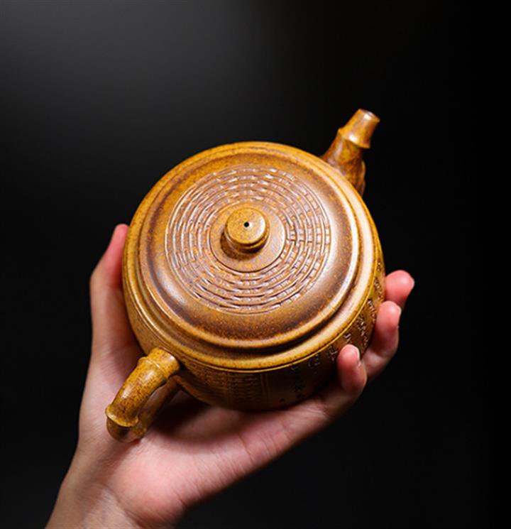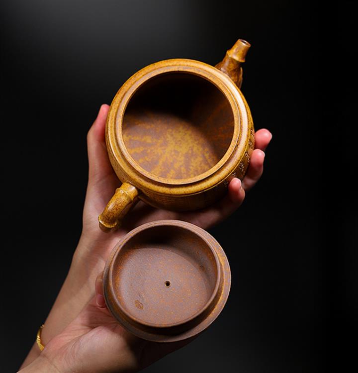 原礦黑泥刻字漢瓦紫砂壺POT5019