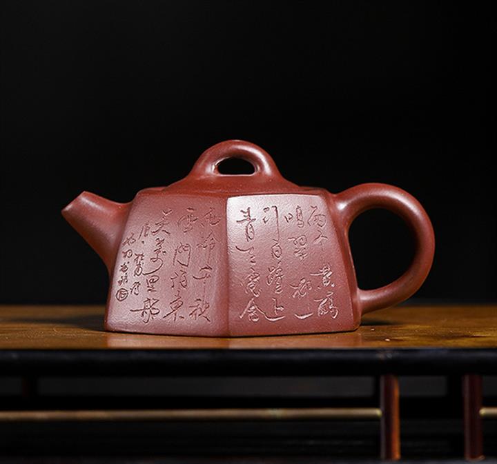 稀有紅龍血砂六方竹影紫砂壺POT5020