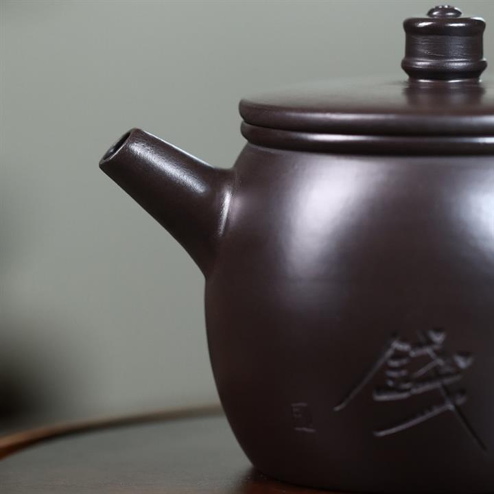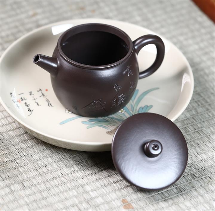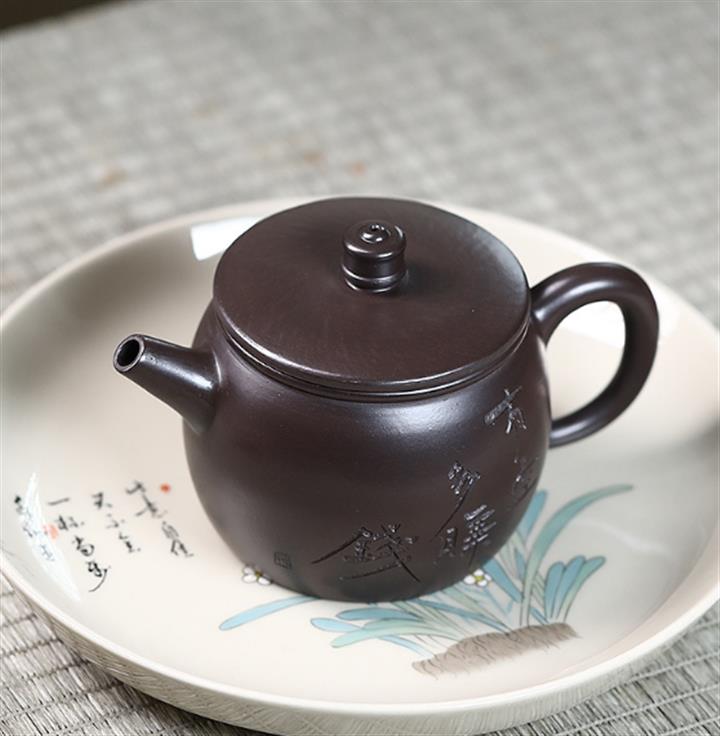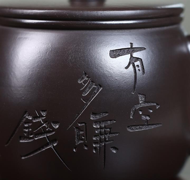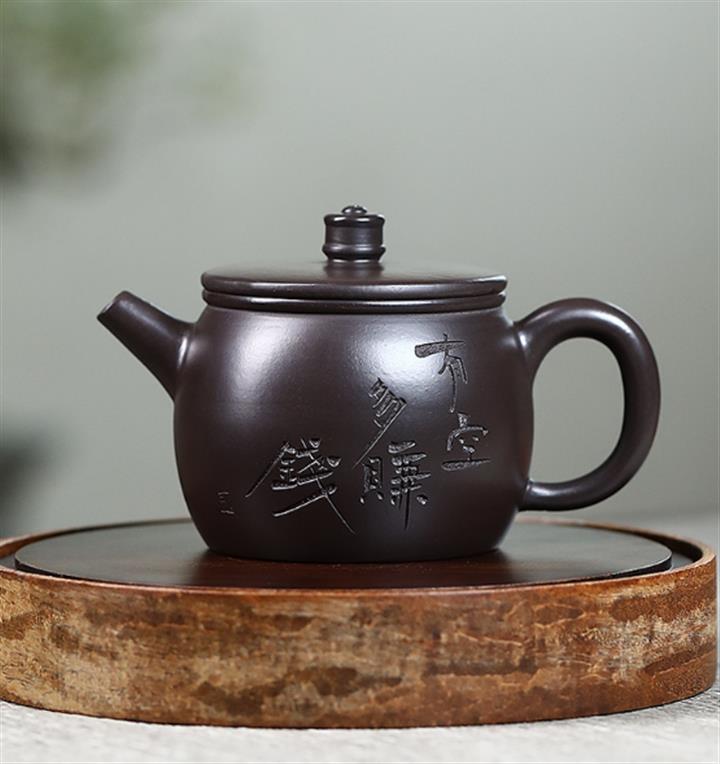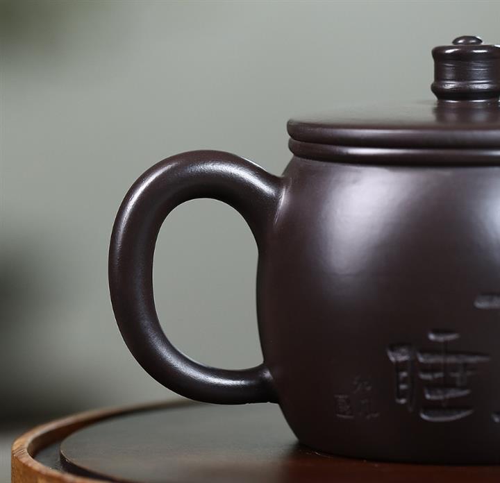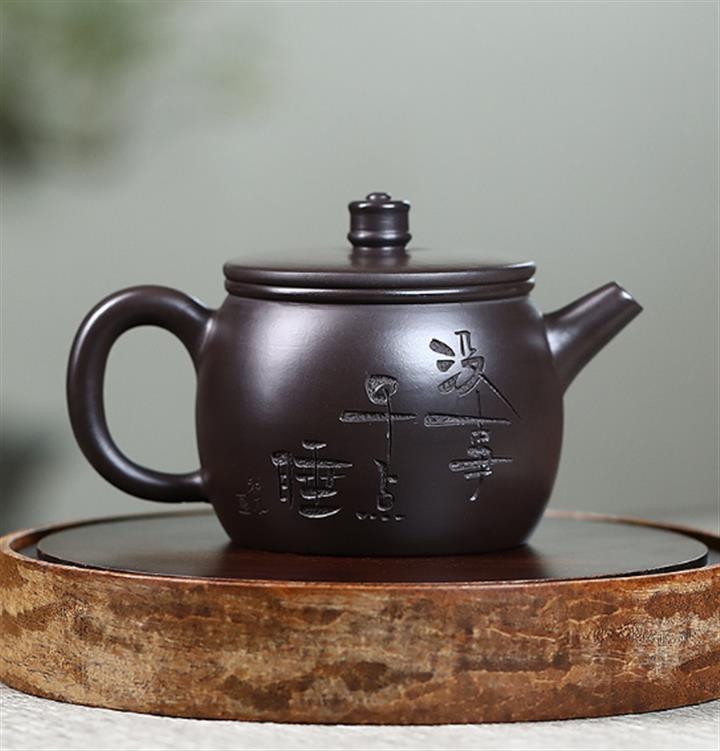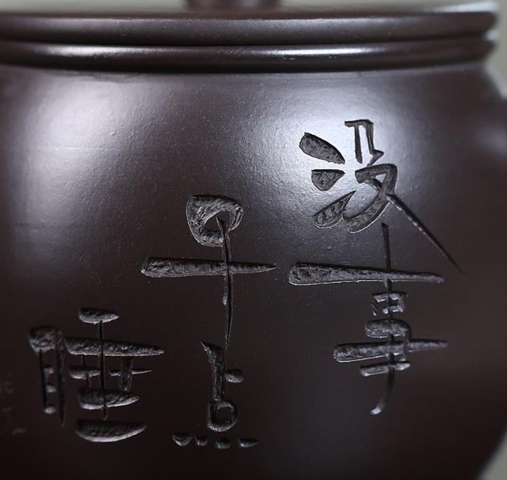 原礦黑泥刻字漢瓦紫砂壺POT5019