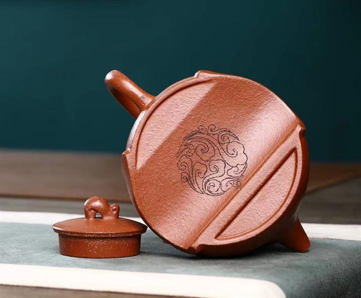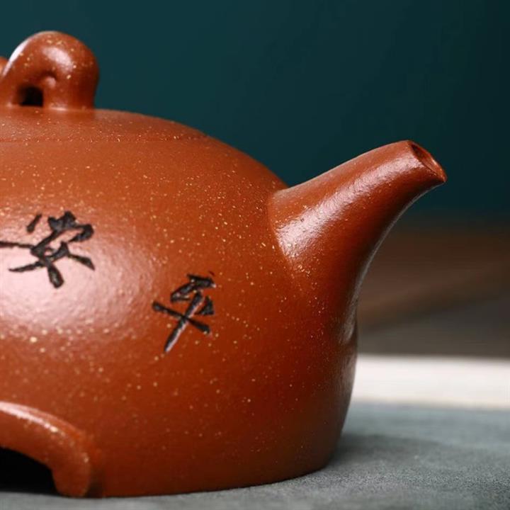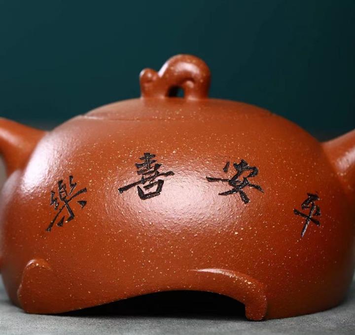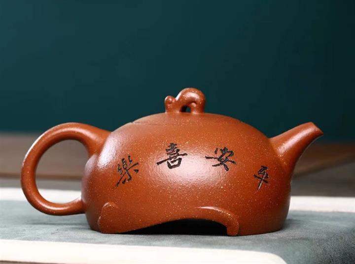 【簡介】此壺為半月壺,是紫砂壺中的經典款型之一,細節之處見價值,「個性」壺鈕,小巧玲瓏,拿捏舒適,短流壺嘴,出水爽利,耳形壺把清晰而圓潤,壺身刻繪栩栩如生,刻字「平安喜樂」是一種美好的祝願。壺底造型更是別出心裁,個性十足。在製作上是繼承中有所創新,該壺身較為飽滿和高挺,好似月出大半之形,給人一種好事將近萬事即將圓滿如意之感,吉祥和祝福之意,充溢此壺。整壺比例協調,壺身細膩柔和,自然流暢,宛若天成,也足見製壺者精湛的製壺工藝,值得把玩泡養,是傳承紫砂經典一款值得收藏的茶器。