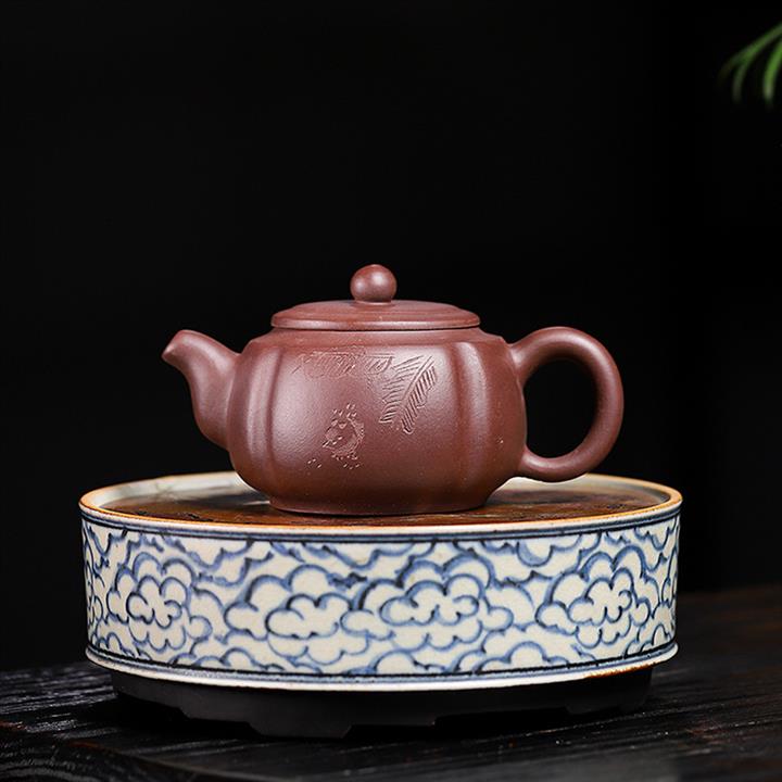 原矿紫朱泥山水瓦瓢紫砂壺POT5132