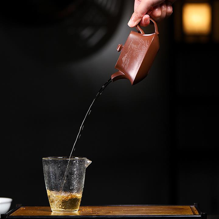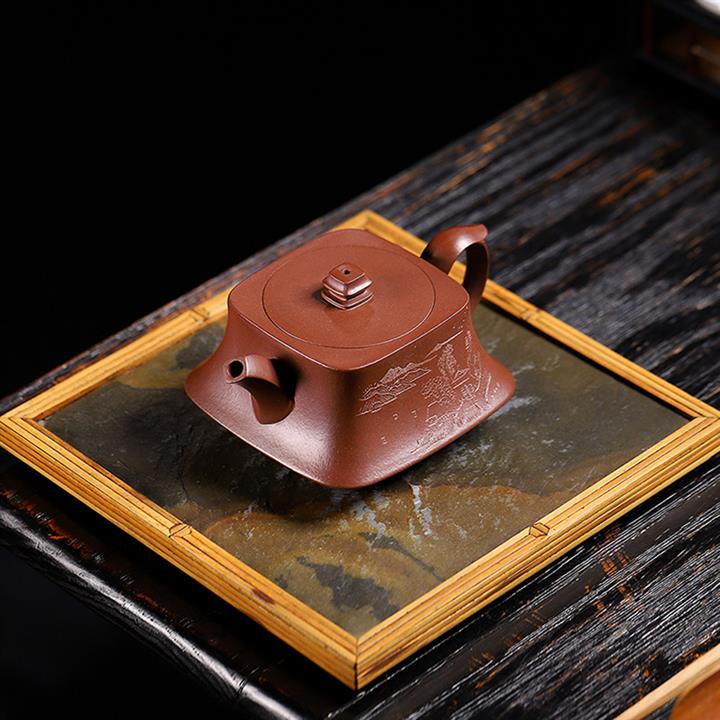 原矿紫朱泥山水瓦瓢紫砂壺POT5132