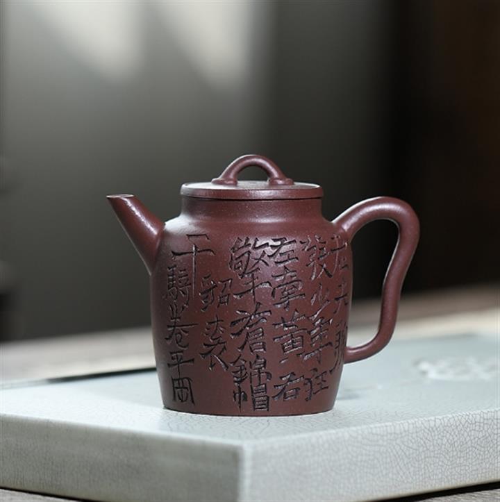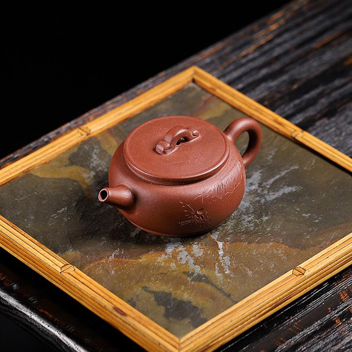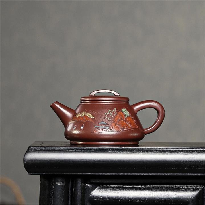 原矿紫朱泥山水瓦瓢紫砂壺POT5132