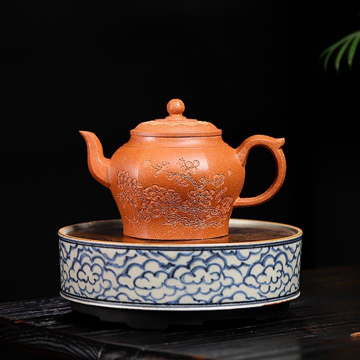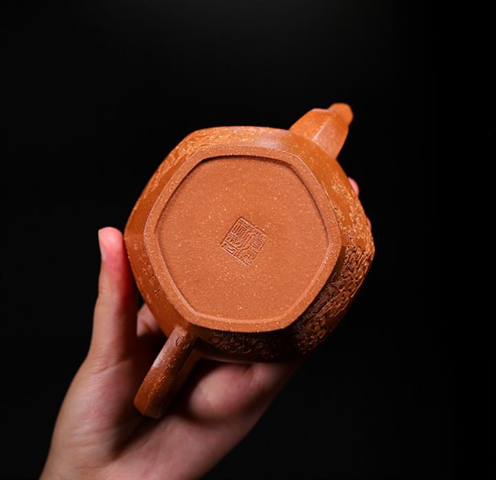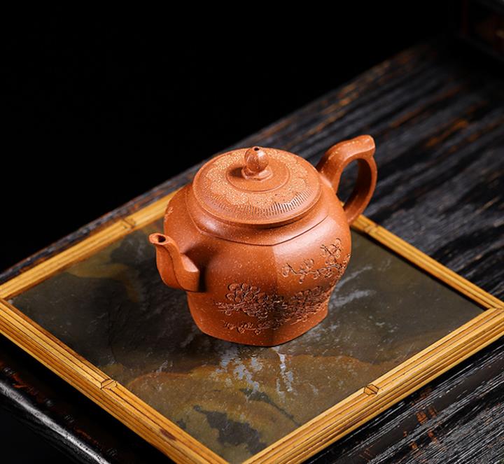 原矿紫朱泥山水瓦瓢紫砂壺POT5132