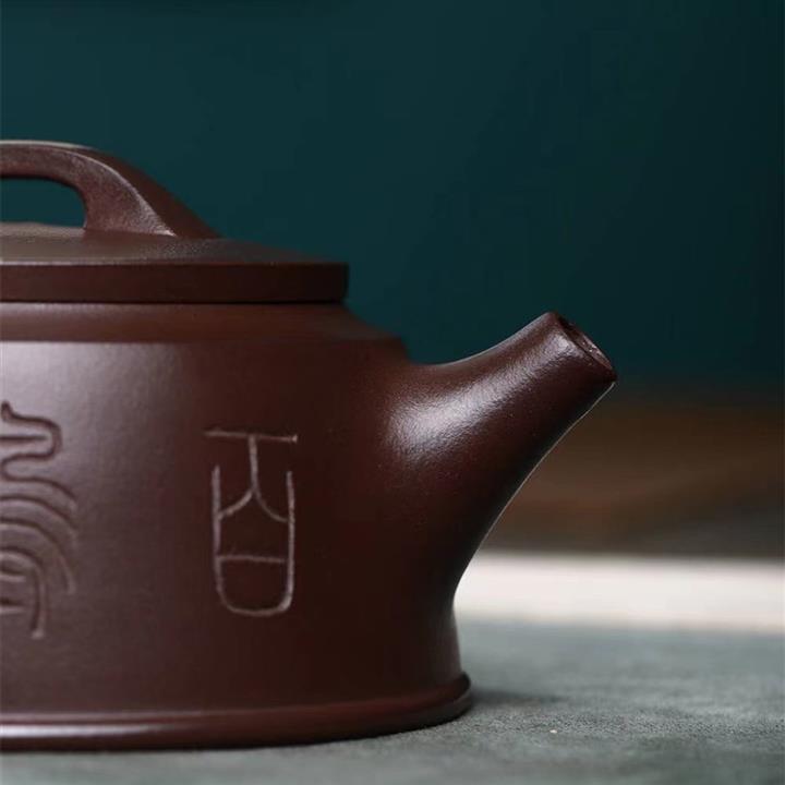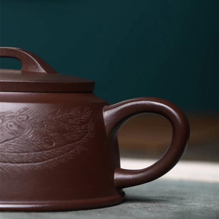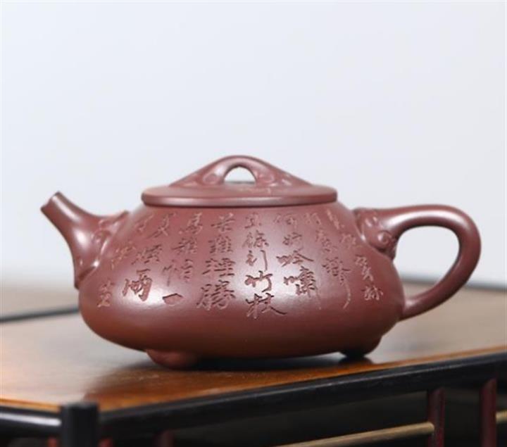 【簡介】此壺比例勻稱,落落大方,色澤光潤飽滿,古雅大氣,在泥色和勾勒效果上更顯清素典雅,整器渾圓柔美,高雅光潤,壺身刻繪手法精湛,獨具匠心,註重實用性和藝術性,淩厲飄逸,自成一派,收藏價值倍增。