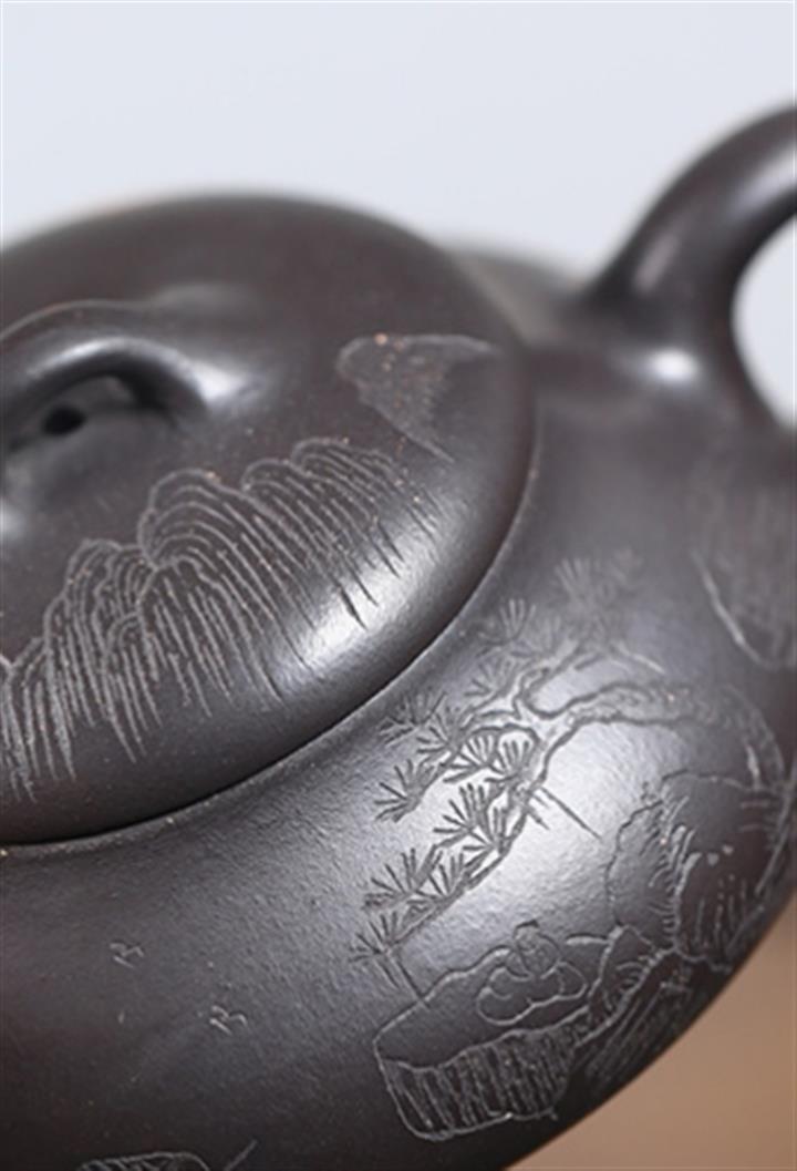 紫泥山水漢瓦紫砂壺POT5152