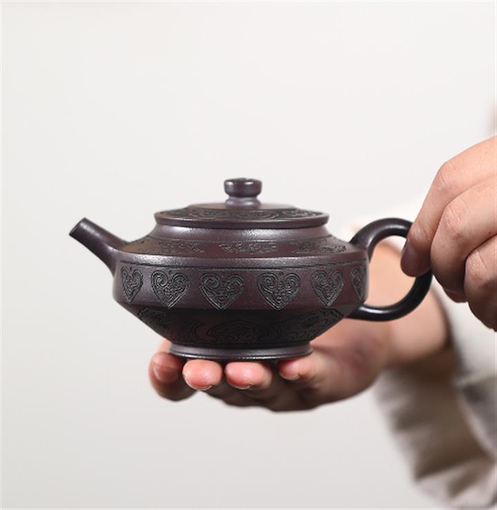 【簡介】此款壺形線條流暢,壺把,壺嘴,壺身一氣呵成栩栩如生,是收藏把玩的好壺,泥料色澤古樸典雅,日久使用,漸露鋒芒,養成變化快,溫潤莊重,用其泡茶,使用的年代久,壺身就溫潤,泡出來的茶湯也就醇郁芳馨。