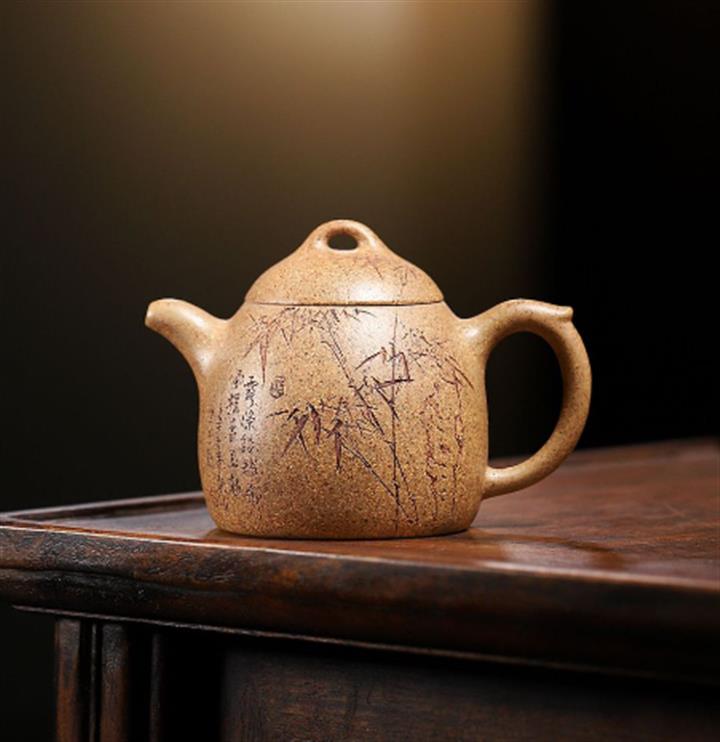 原礦黃段泥鳥語花香紫砂壺POT5178