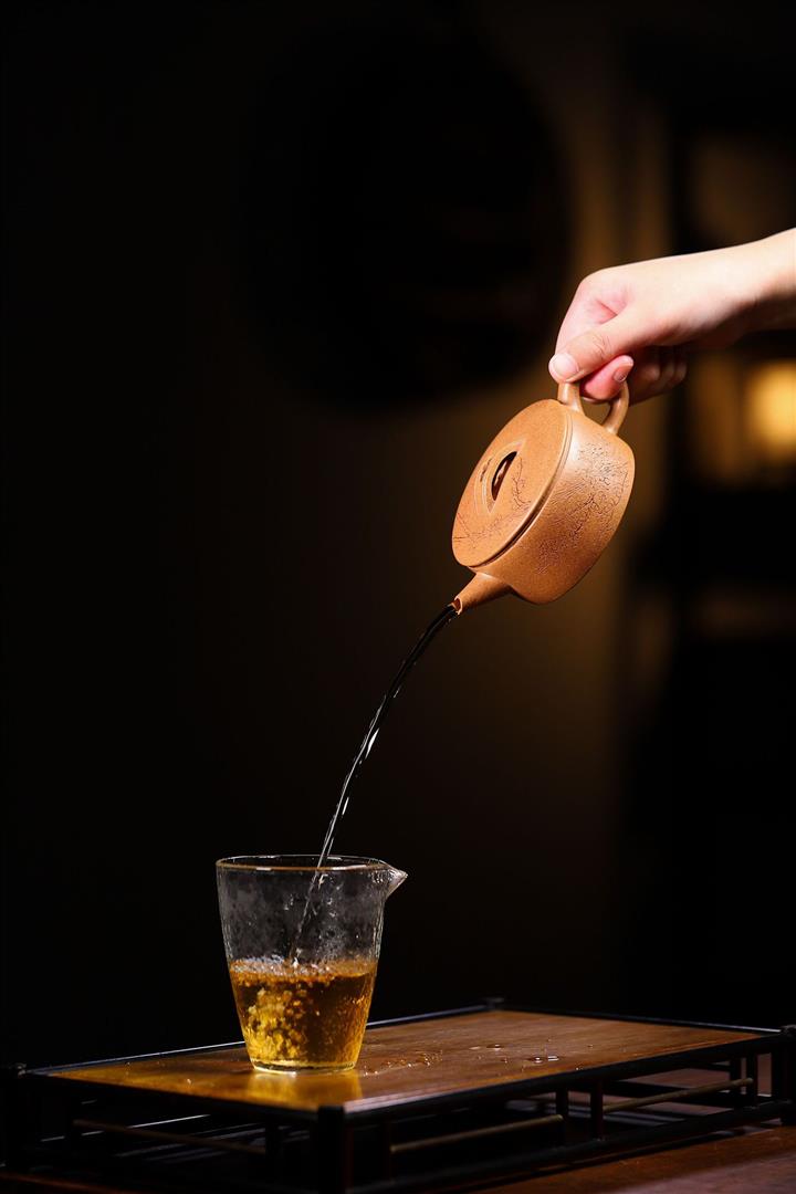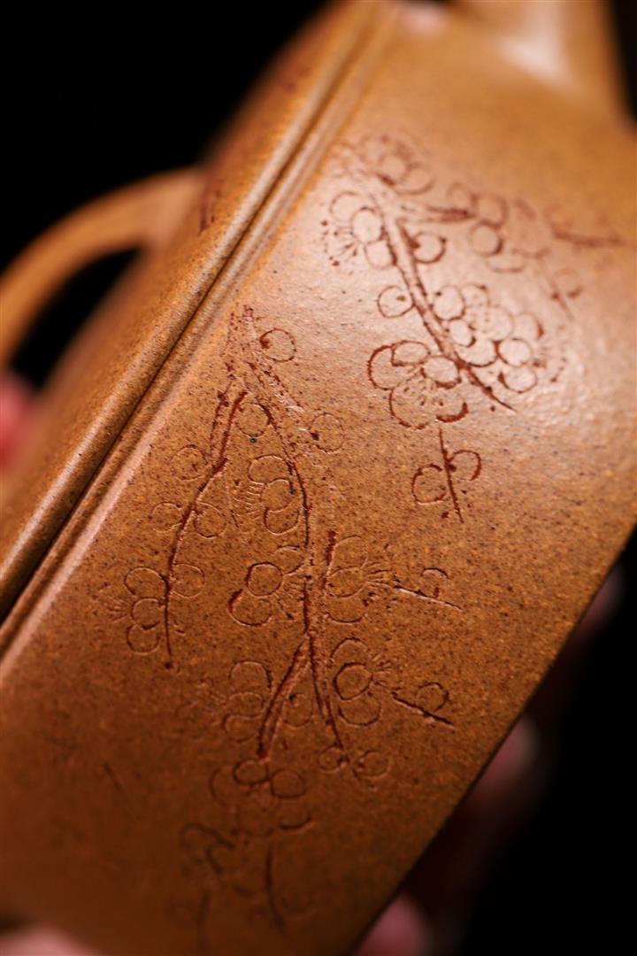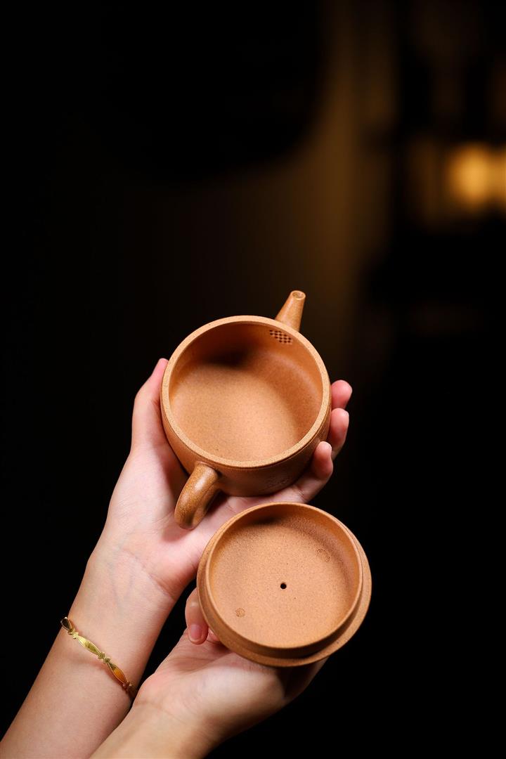 【泥料特點】砂土氣重,似淳實農民,日久使用,漸露鋒芒,養成變化甚大,溫潤莊重。線條優美自然,嘴把搭配協調,身桶配上細長的把搭配,更顯優雅高貴