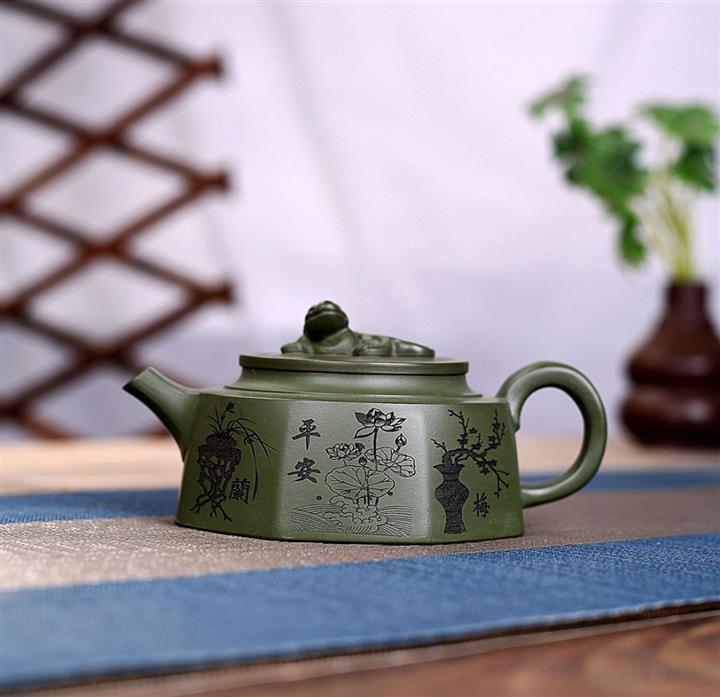原礦綠泥八方祥瑞紫砂壺POT5326