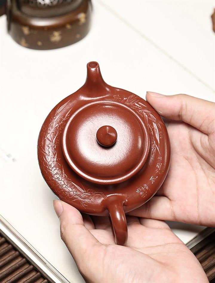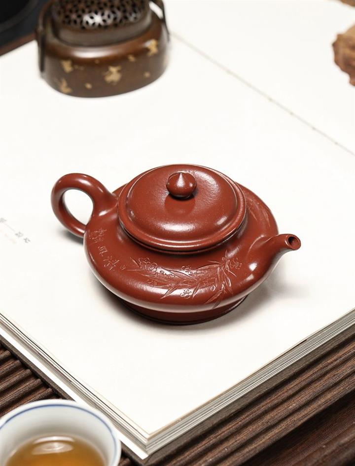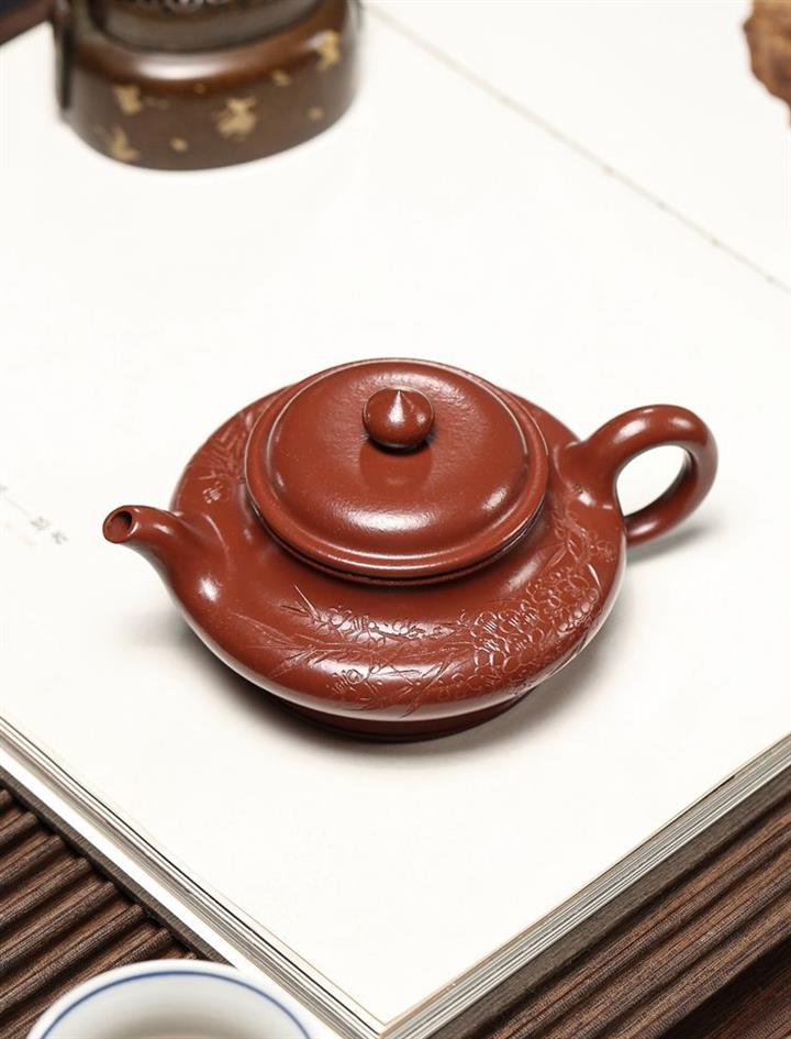 大紅袍虛扁紫砂壺POT5240