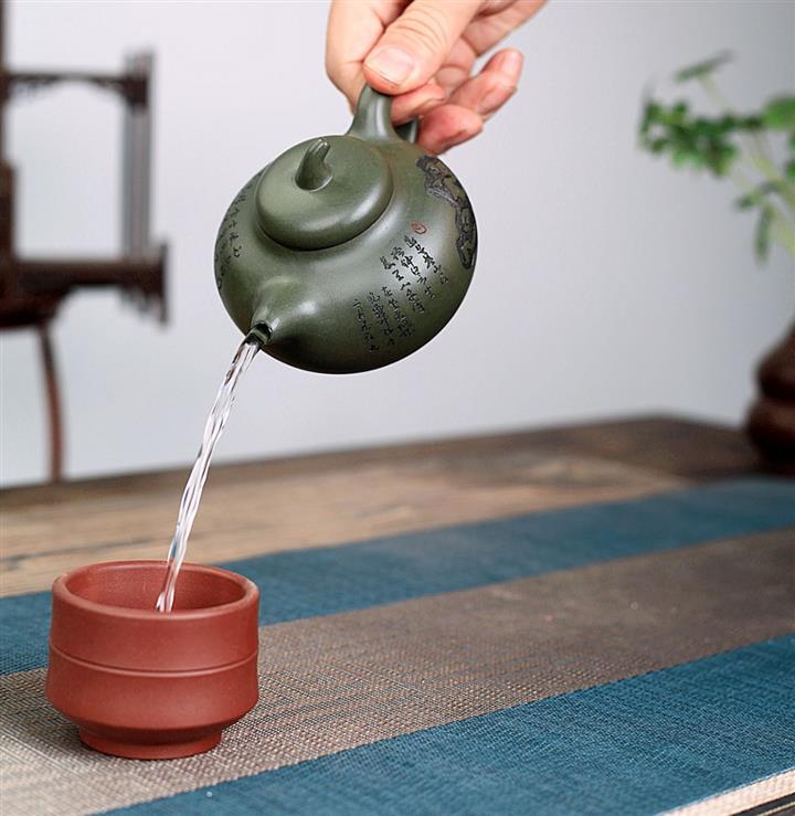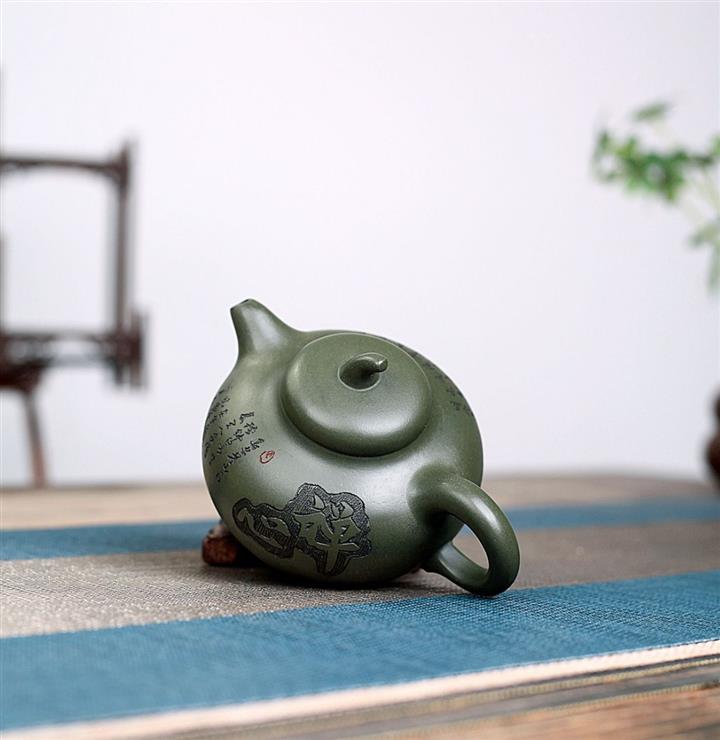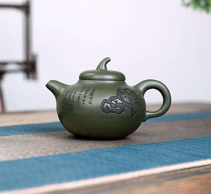 綠泥荷塘魚趣紫砂壺POT5332