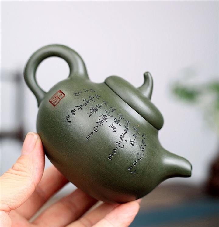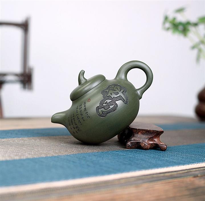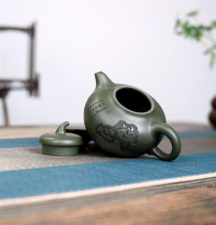黑朱泥孔雀石瓢紫砂壺POT5331