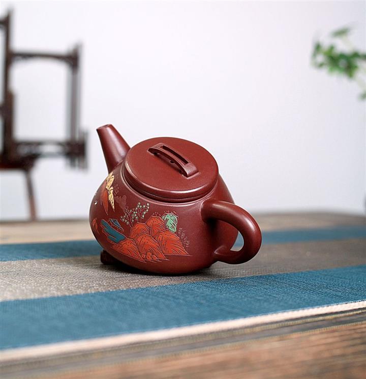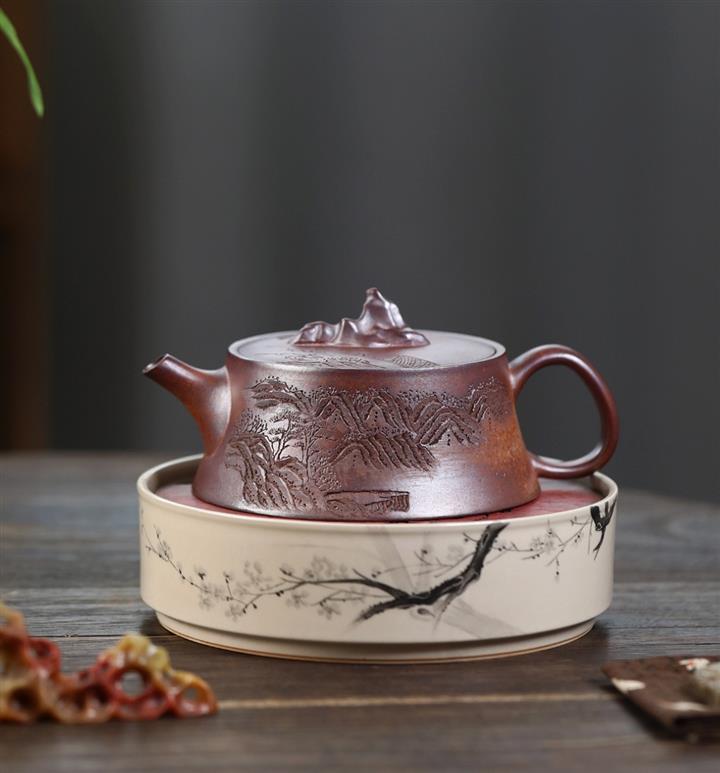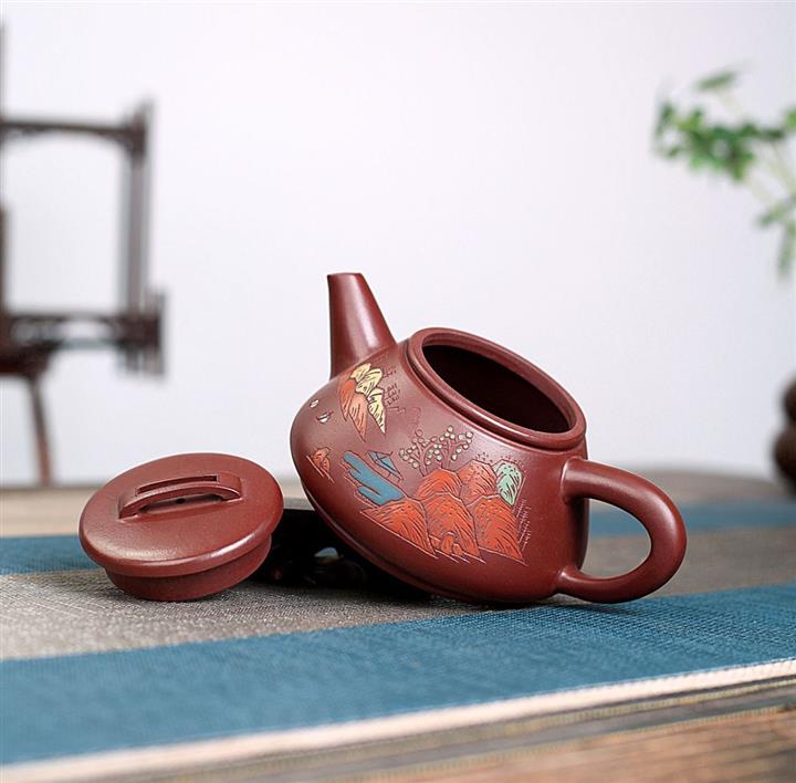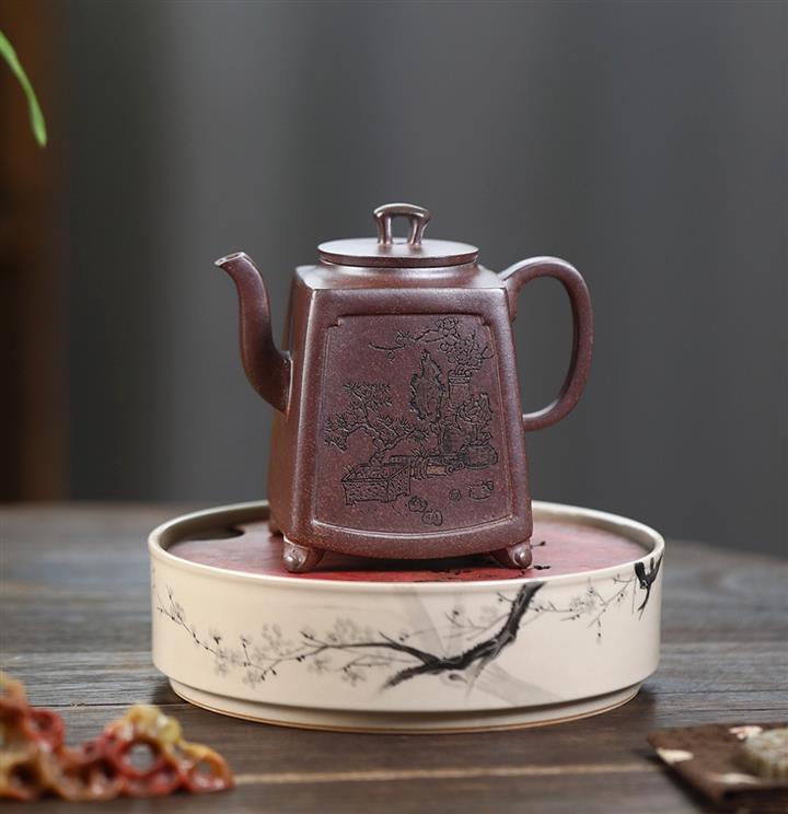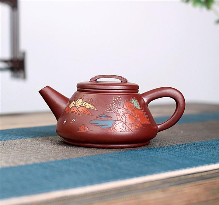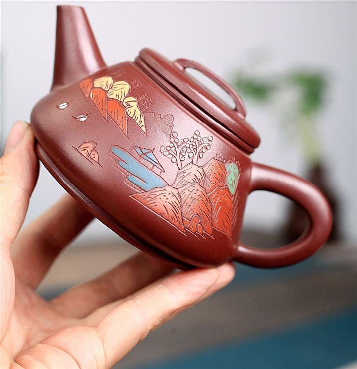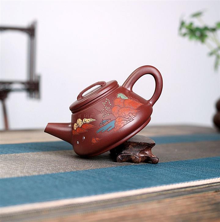原礦紫泥山水瓦瓢紫砂壺POT5328