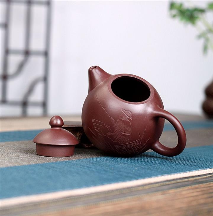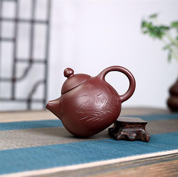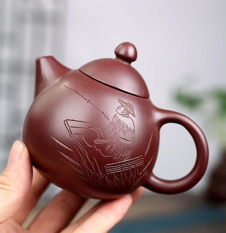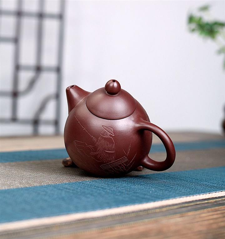 原礦紫朱泥獨釣龍蛋紫砂壺POT5329