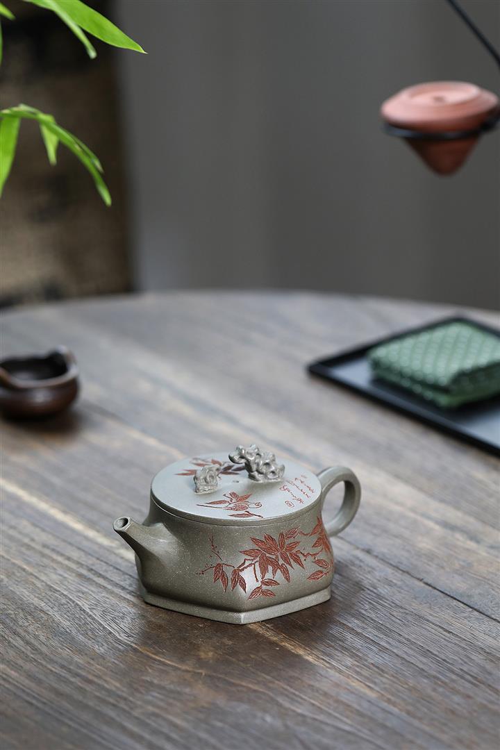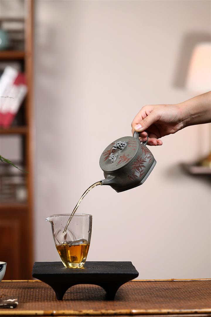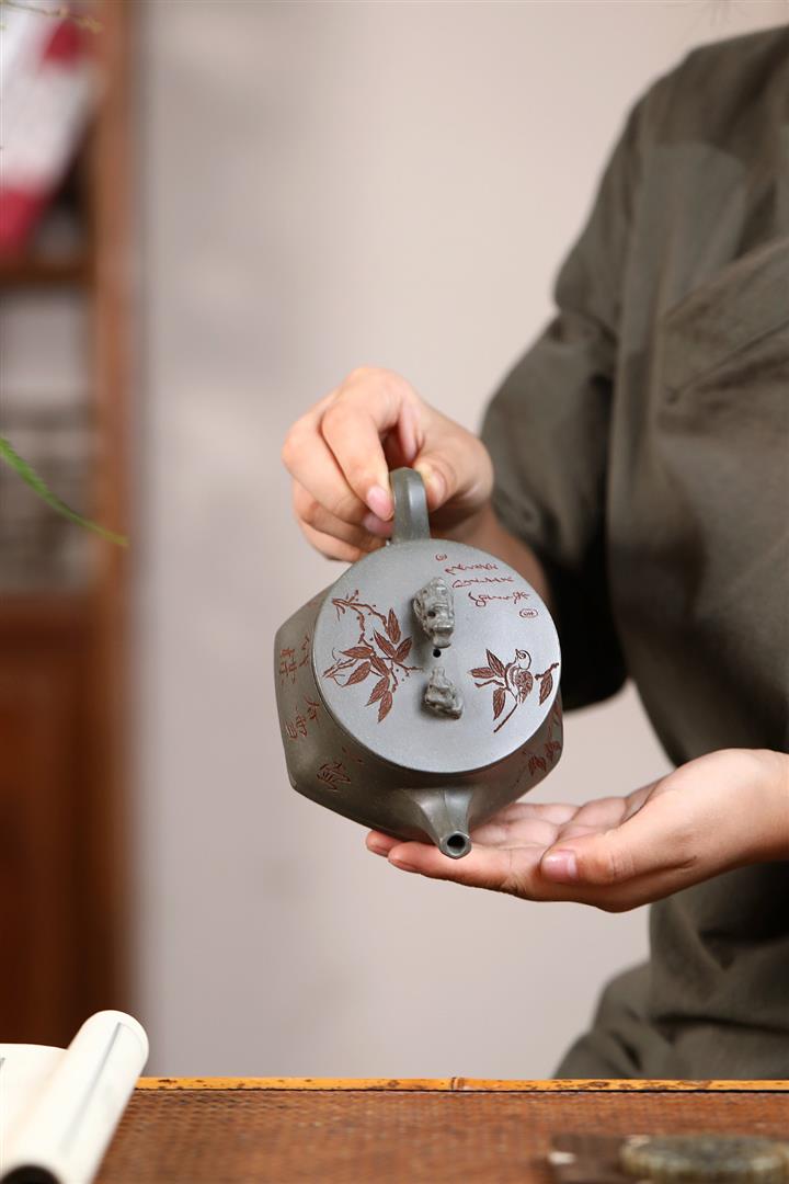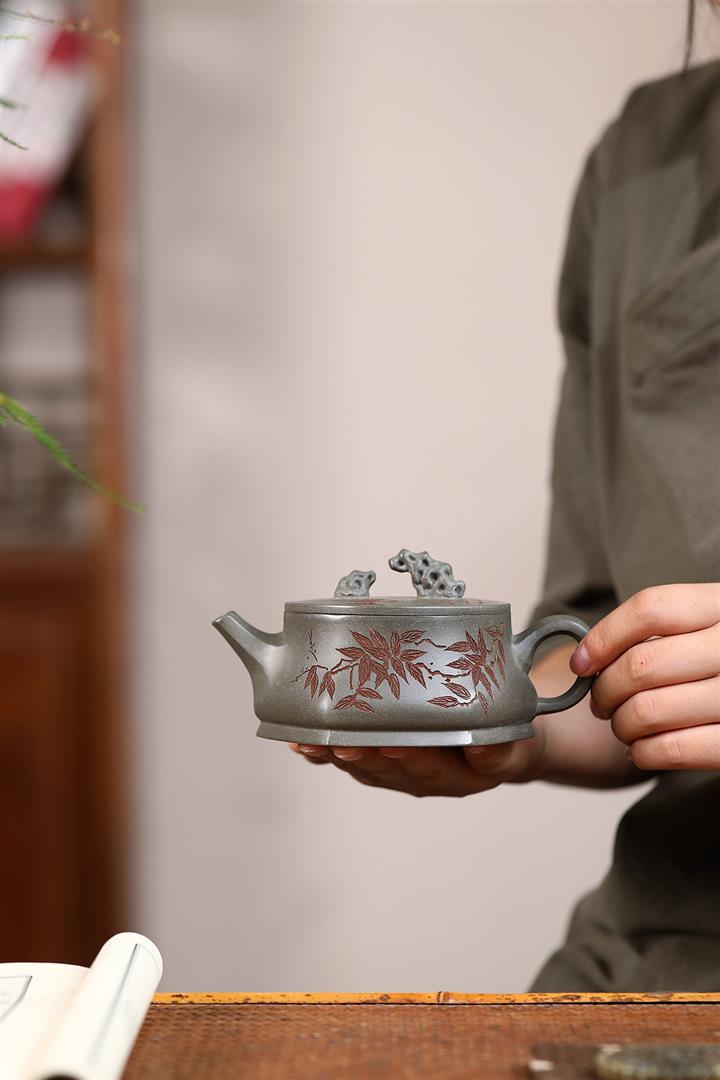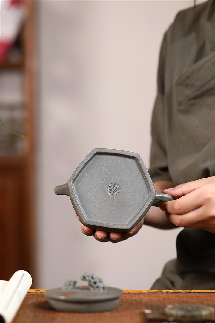 【作品介紹】此款壺形線條流暢,壺把,壺嘴,壺身一氣呵成栩栩如生,是收藏把玩的好壺,泥料色澤古樸典雅,日久使用,漸露鋒芒,養成變化快,溫潤莊重,用其泡茶,使用的年代久,壺身就溫潤,泡出來的茶湯也就醇郁芳馨。