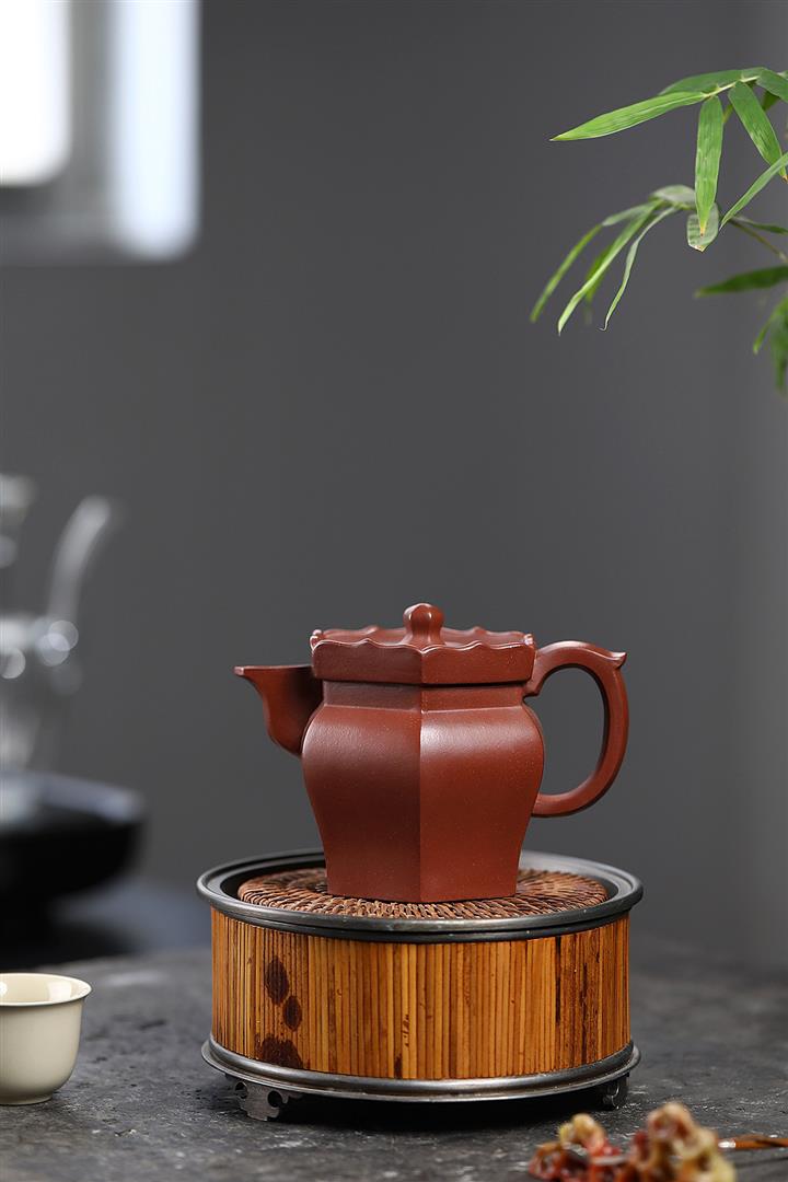 原礦龍血砂四方竹鼎紫砂壺POT5363