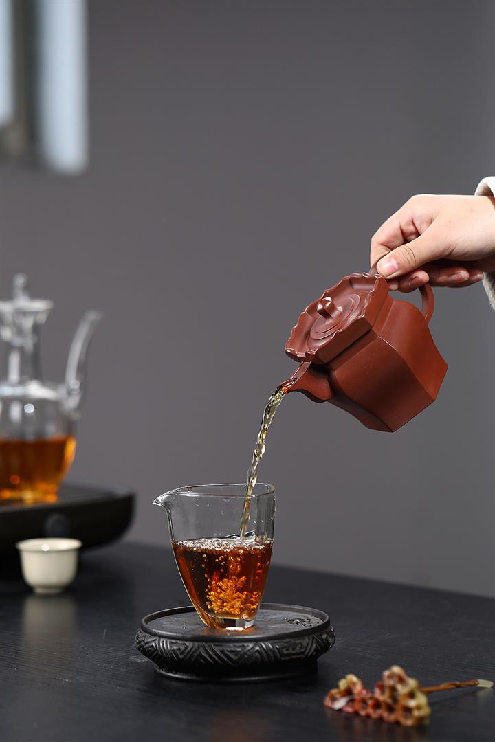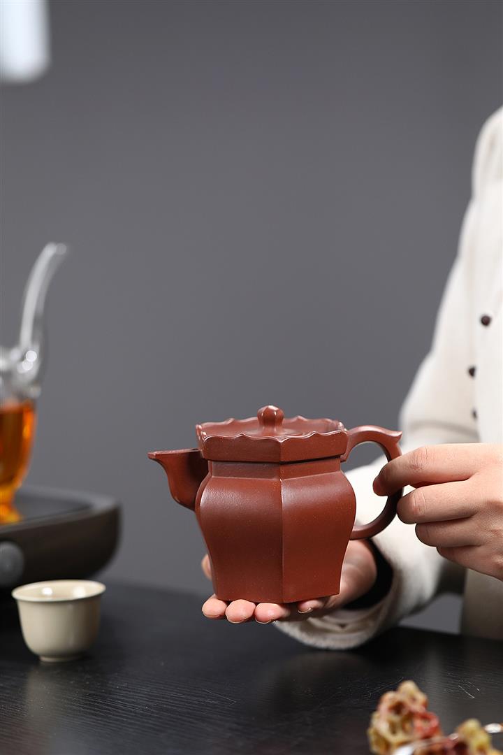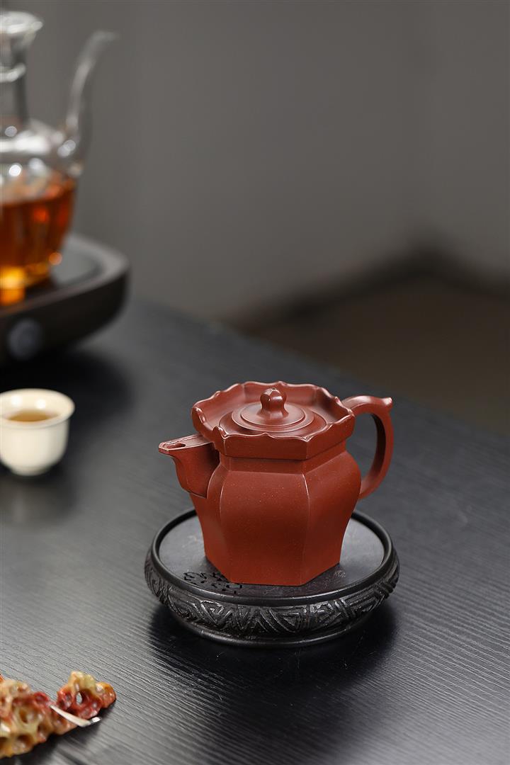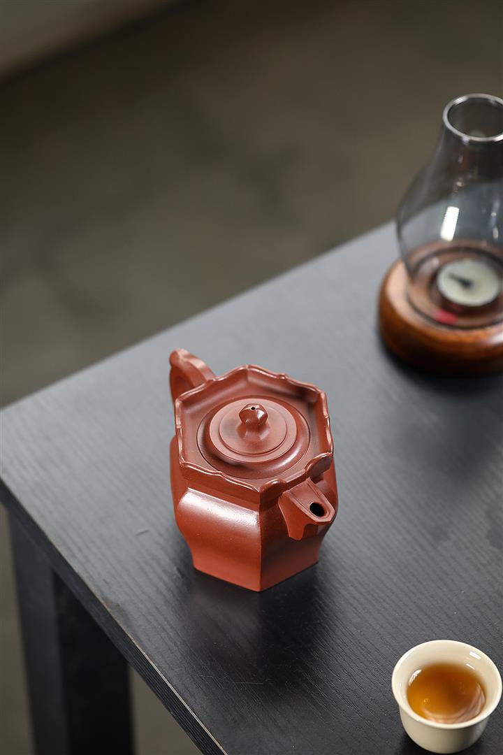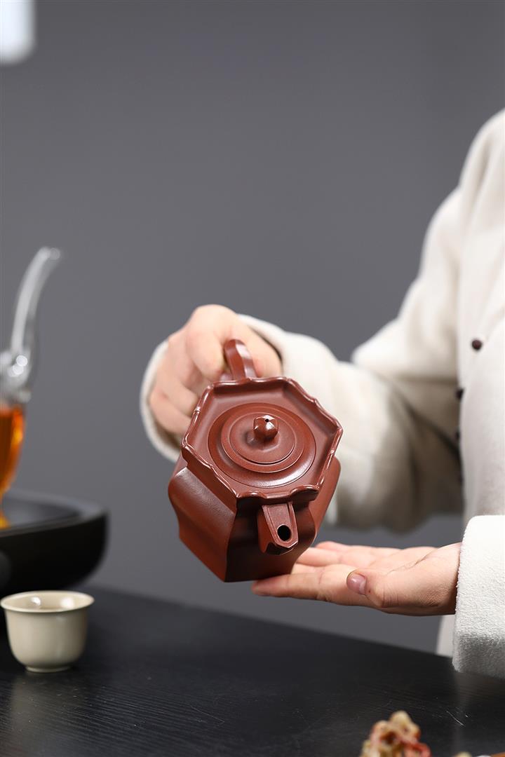 原礦紫泥六方三足乳釘紫砂壺POT5371