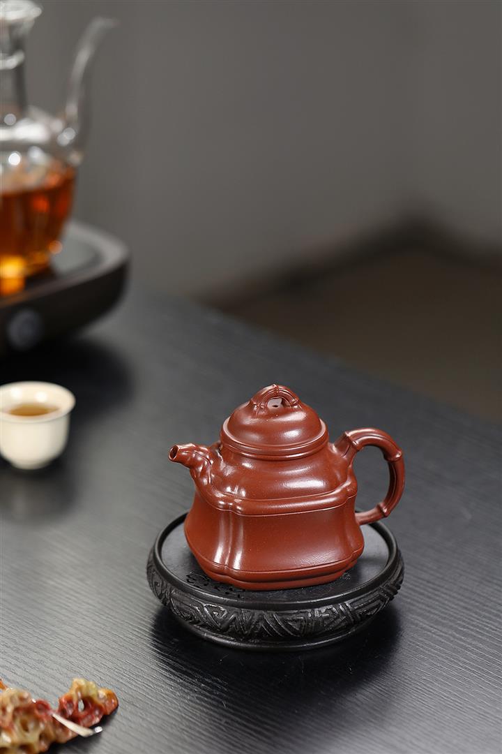 原礦龍血砂四方竹鼎紫砂壺POT5363